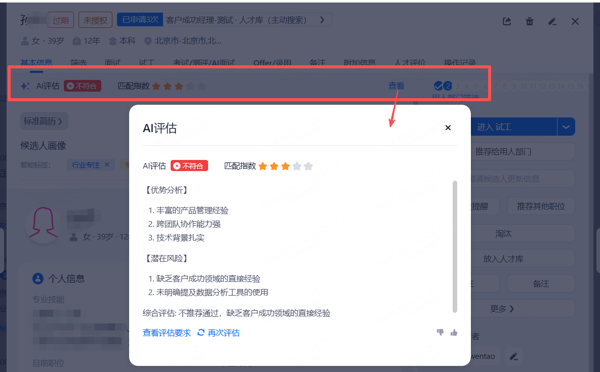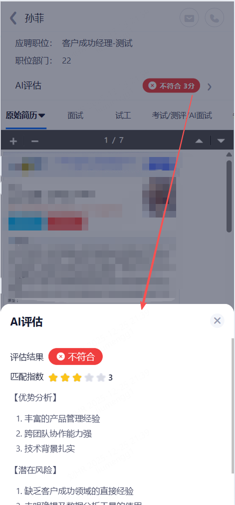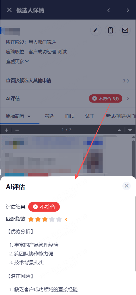 一、 用人经理端和HR移动端支持查看AI初筛结果