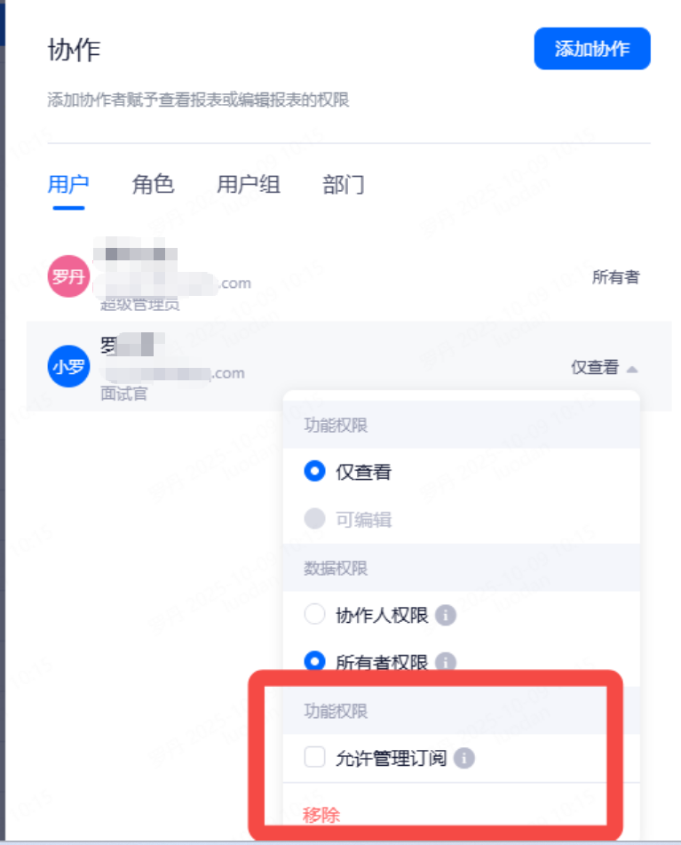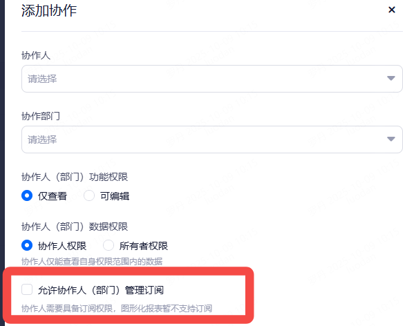 批量协作,也支持是否允许管理订阅(按组协作时暂不支持)