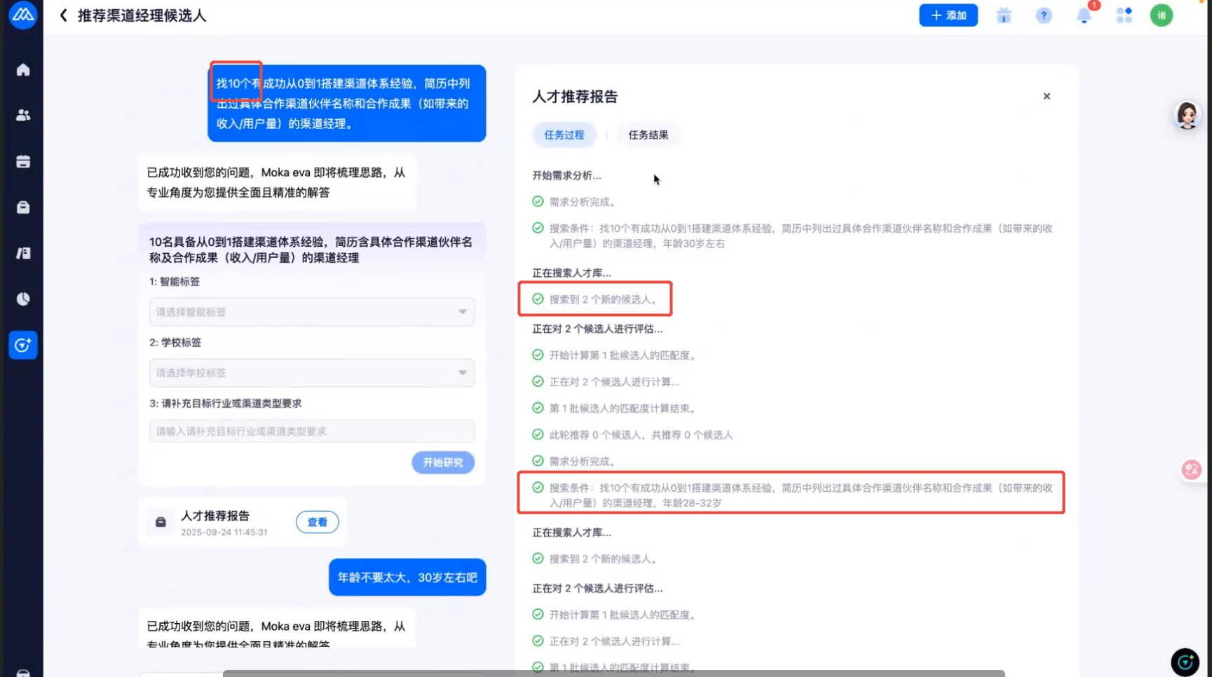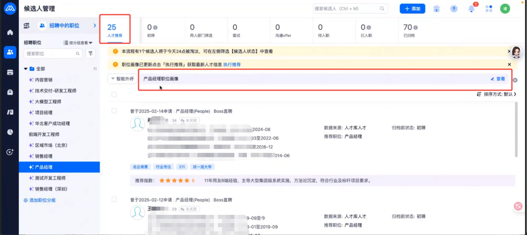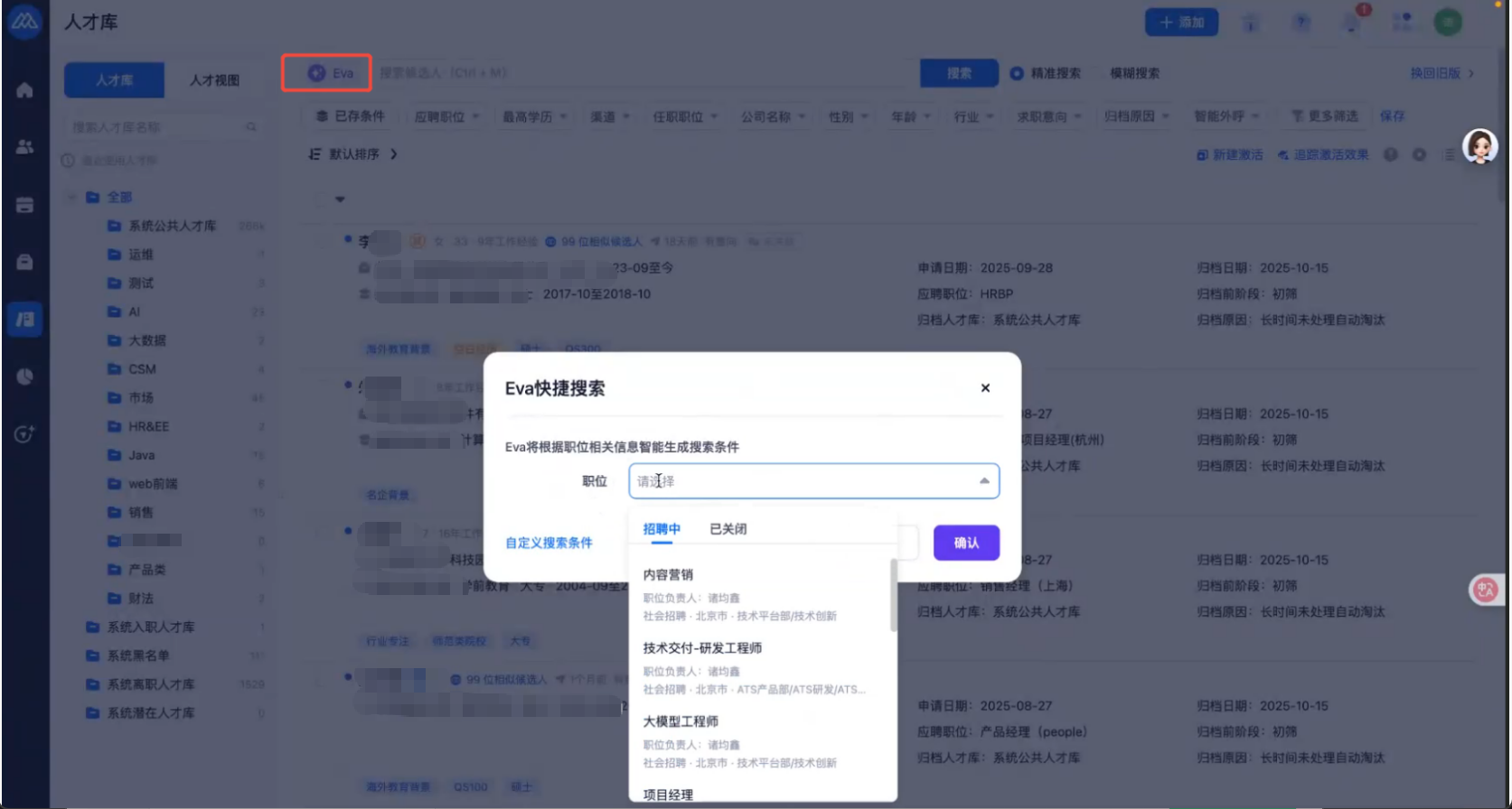 候选人管理界面的人才搜索 基于职位JD 推荐人才库内的候选人