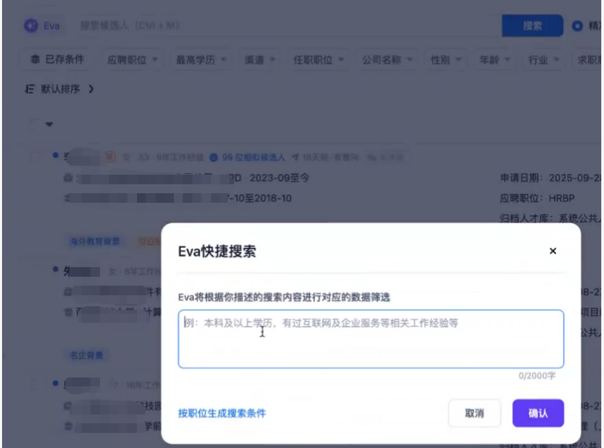 可根据职位JD或者自定义的搜索条件 自动转成筛选条件