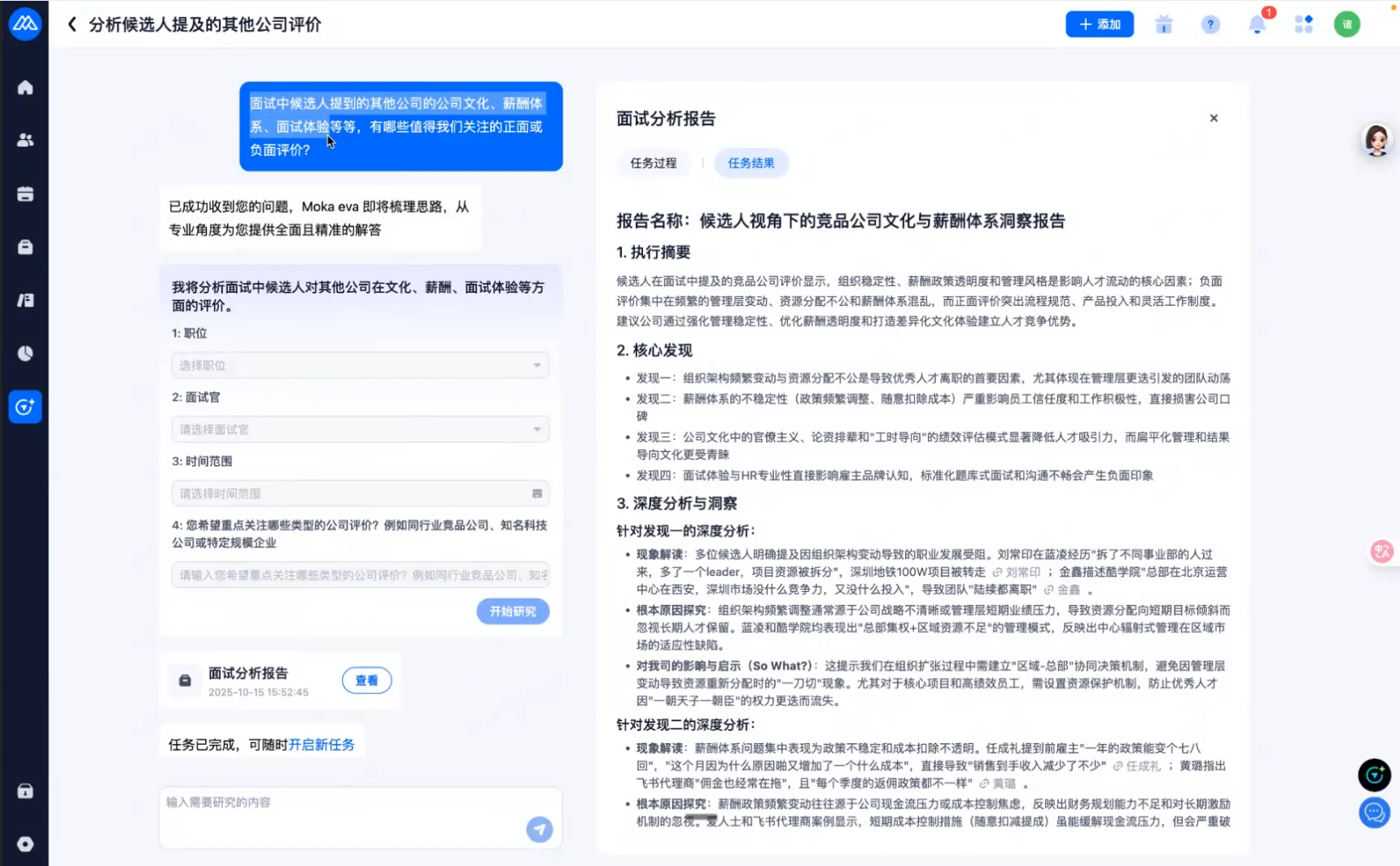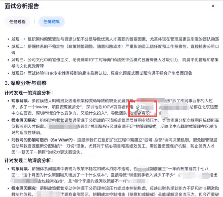 使已生成的面试纪要内容中挖掘出用户需要的信息并进行分析