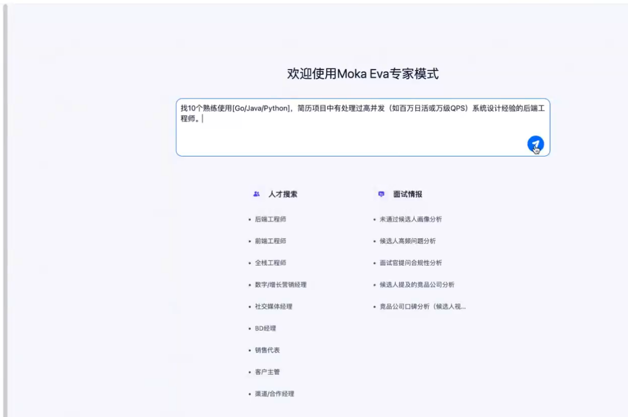 目前功能:人才搜索 / 面试情报 (20次试用次数)