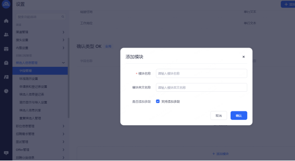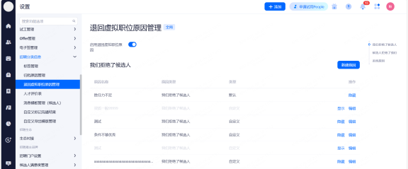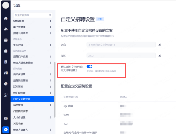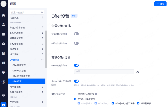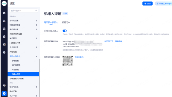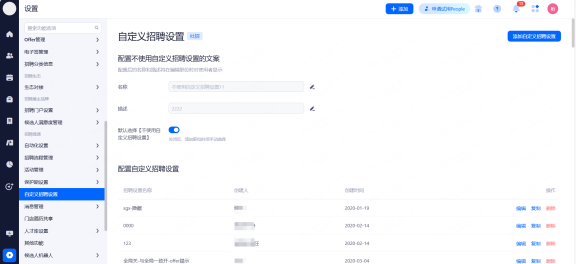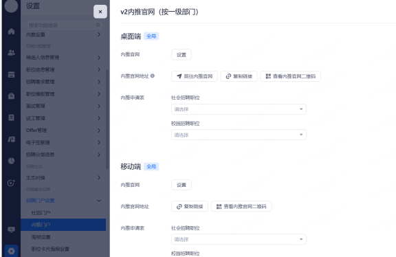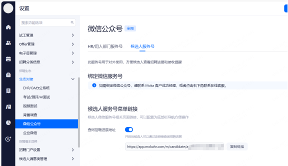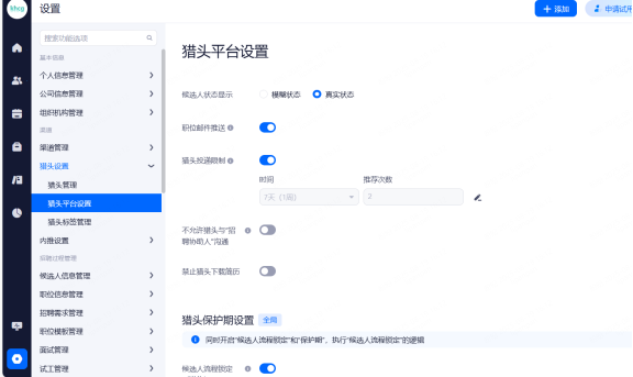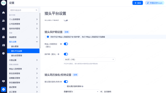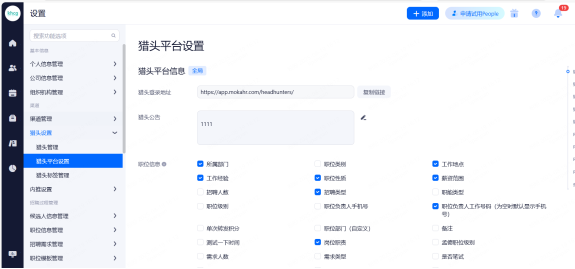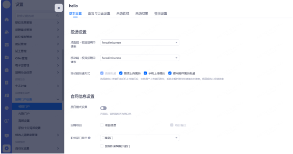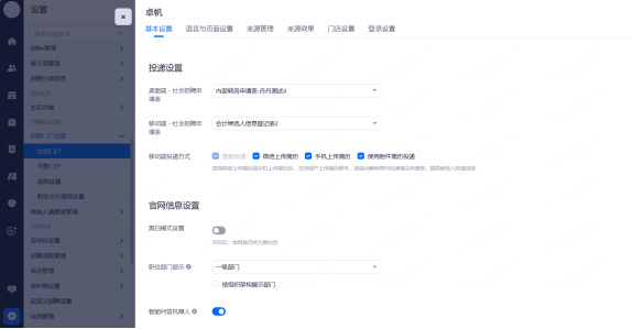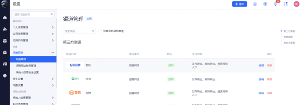 主要设置启用和关闭现有可对接渠道,同时可用来区分简历的渠道来源。