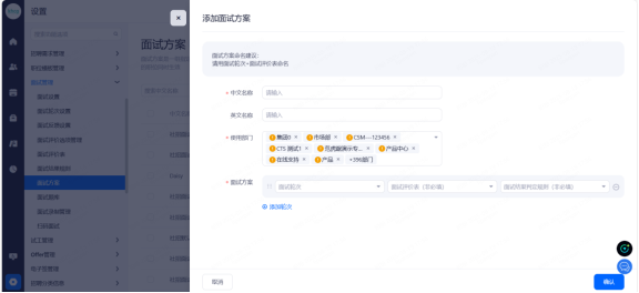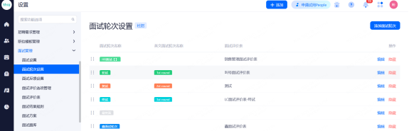 面试官组:多用于为一个候选人安排一场多轮面试,该轮面试官可可设置为一个群组,便于快捷添加该组内的所有面试官。