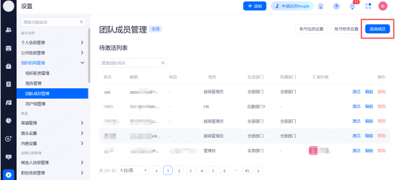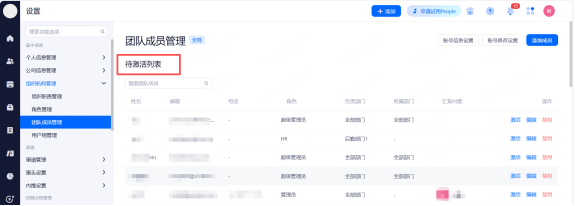 超级管理员、高级用人经理、HR角色受邀成员账号激活