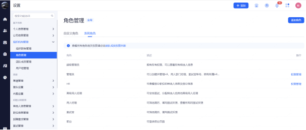 超级管理员:权限最高,可管理团队成员和查看所有候选人信息(一般是公司HR主管)