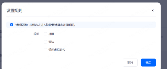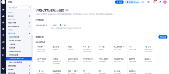 支持触发的阶段不含Offer类型、待入职类型;申请在指定类型的的阶段中停留达到指定天数;阶段停留时间单位为自然天。