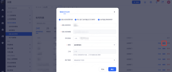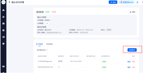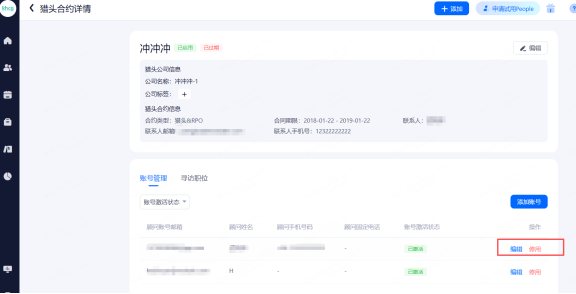 账号查看和管理。可查看公司内各种角色账号的信息并进行相关配置。