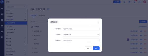 组织机构为职位所属机构、团队成员、权限控制等重要维度,也是企业管理的层级架构体现。