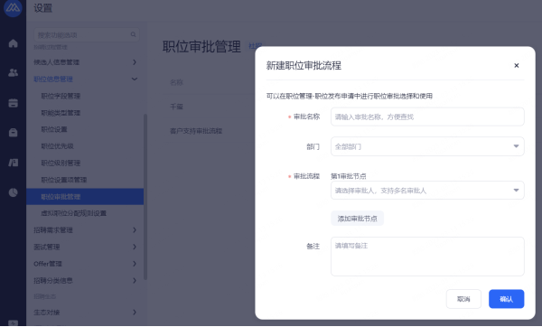 职务管理用于HR按职务区别部门或门店的人员,新增职务类型,新建后需关联至相应部门。