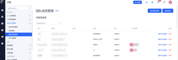 填写完成点击右下方新增按钮后会显示待接受邀请成员列表,可对已发送的邀请进行重新发送和删除。