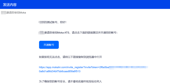 受邀成员收到邮件后,点击邮件正文的开通账号进行账号激活和登录密码设置。