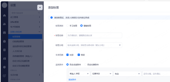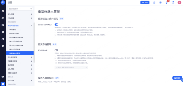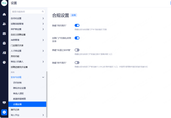 设置候选人信息保留期限,超出保留期限的简历将被标记并提醒删除