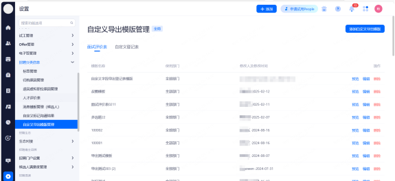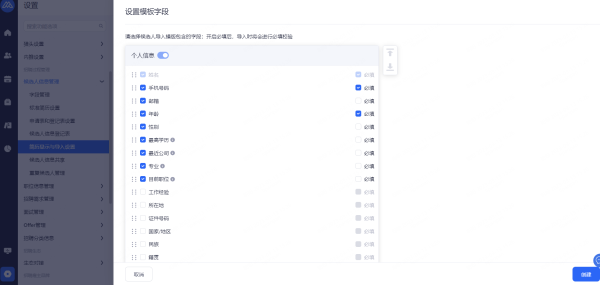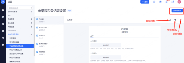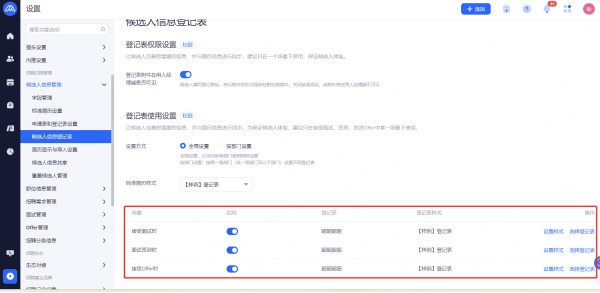 前台登记表设置:开启后前台可打印/下载候选人信息。