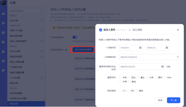 校招人才库候选人流转设置