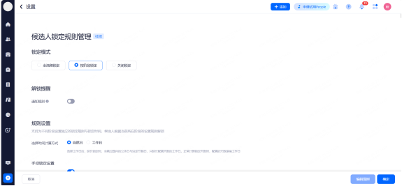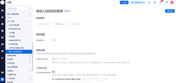 项目申请锁定:职位的锁定候选人功能以项目设置的为准,项目申请锁定的前提是需要开启全局的自动锁定候选人功能