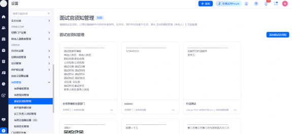 面试通知模板:招聘分类信息>消息模板管理>面试通知模板