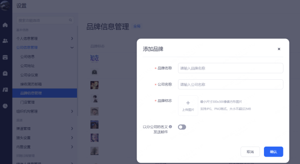 该功能适用于具有多个子品牌的公司,可以在此对自己旗下品牌进行统一规范化管理。