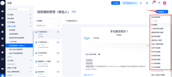 通知候选人模板:招聘分类信息>消息模板管理>通知候选人模板