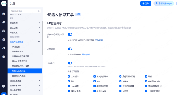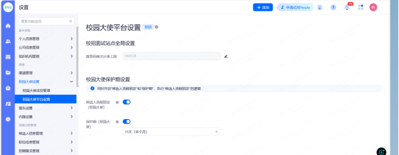 使用校招面试站点管理候选人:启用此功能后,管理员和HR账号拥有站点权限才能查看、操作投递该站点的候选人。