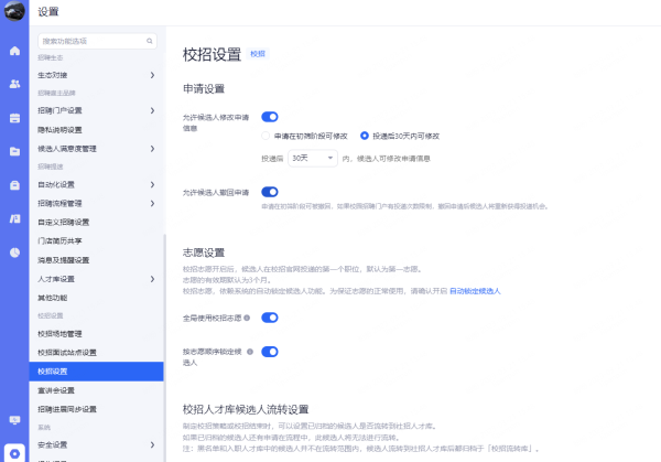 全局使用校招志愿:开启后候选人可设置第一志愿。