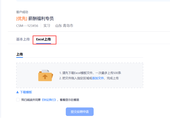 面试官可批量导入,下载模板,补充完后上传即可,面试官与用人经理手机号不必填。(面试官、用人经理不占用付费账号数额)。