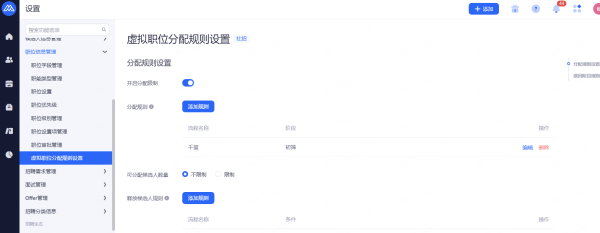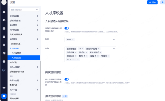 人才库规则管理:可以针对单个的人才库设置入库规则
