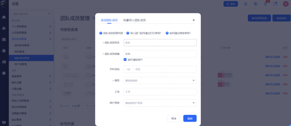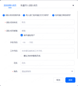 添加团队成员带“*”的内容为必填项