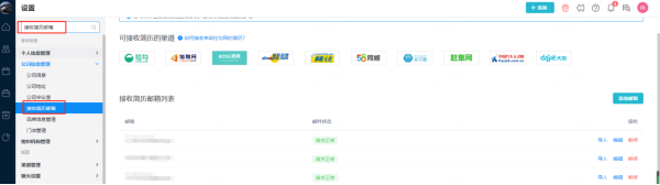 默认简历接收邮箱:公司信息管理>接收简历邮箱