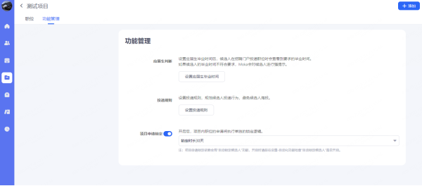 一个项目可以添加多个职位,一个职位只能被一个项目添加,若该职位设置了招聘时间,以职位所在的项目设置的时间为准