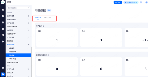 可查看数据统计以及会话记录
