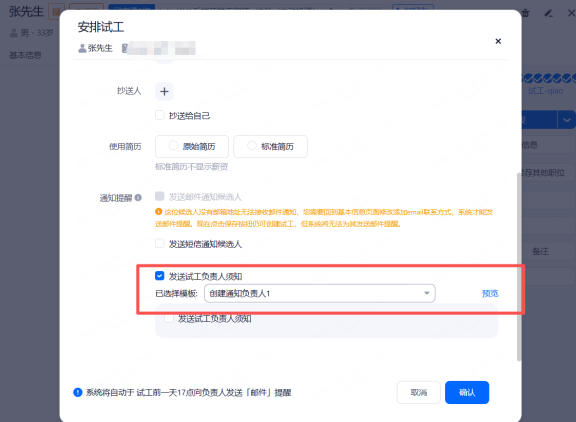 场景启用后,当推荐人完成推荐时,向候选人发送确认通知