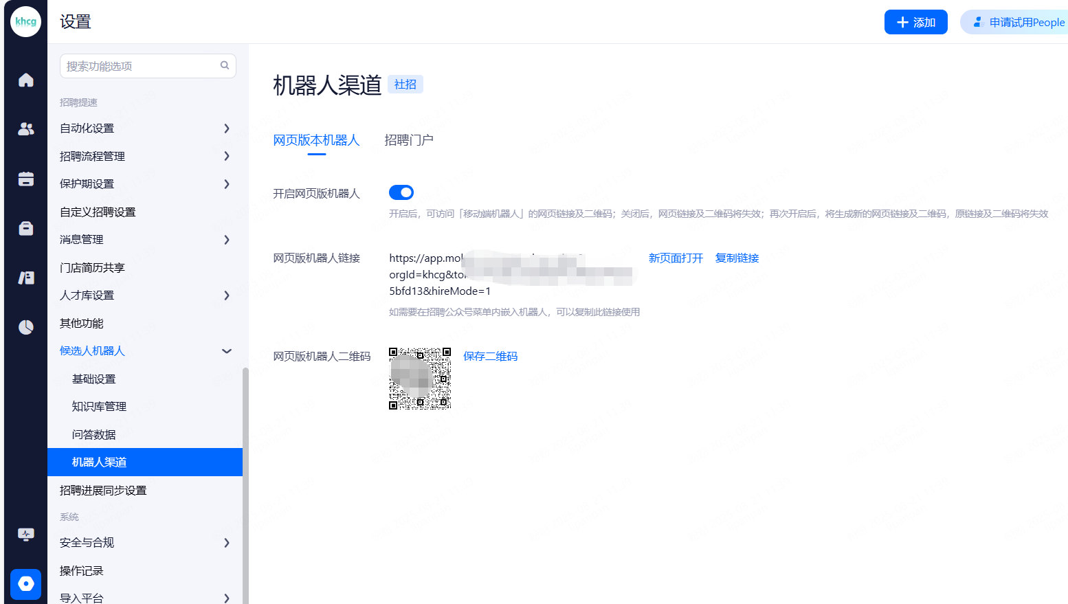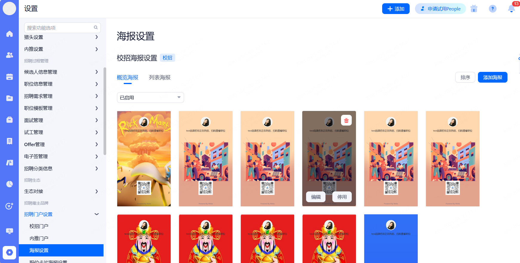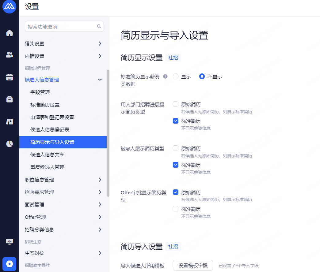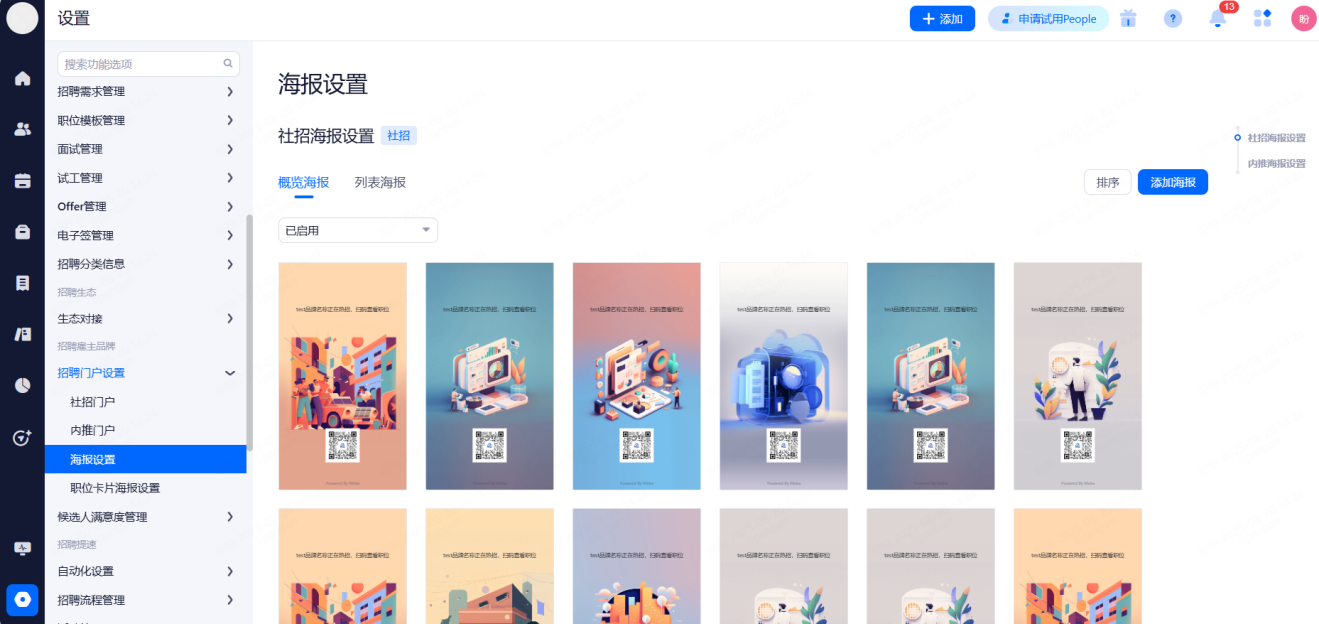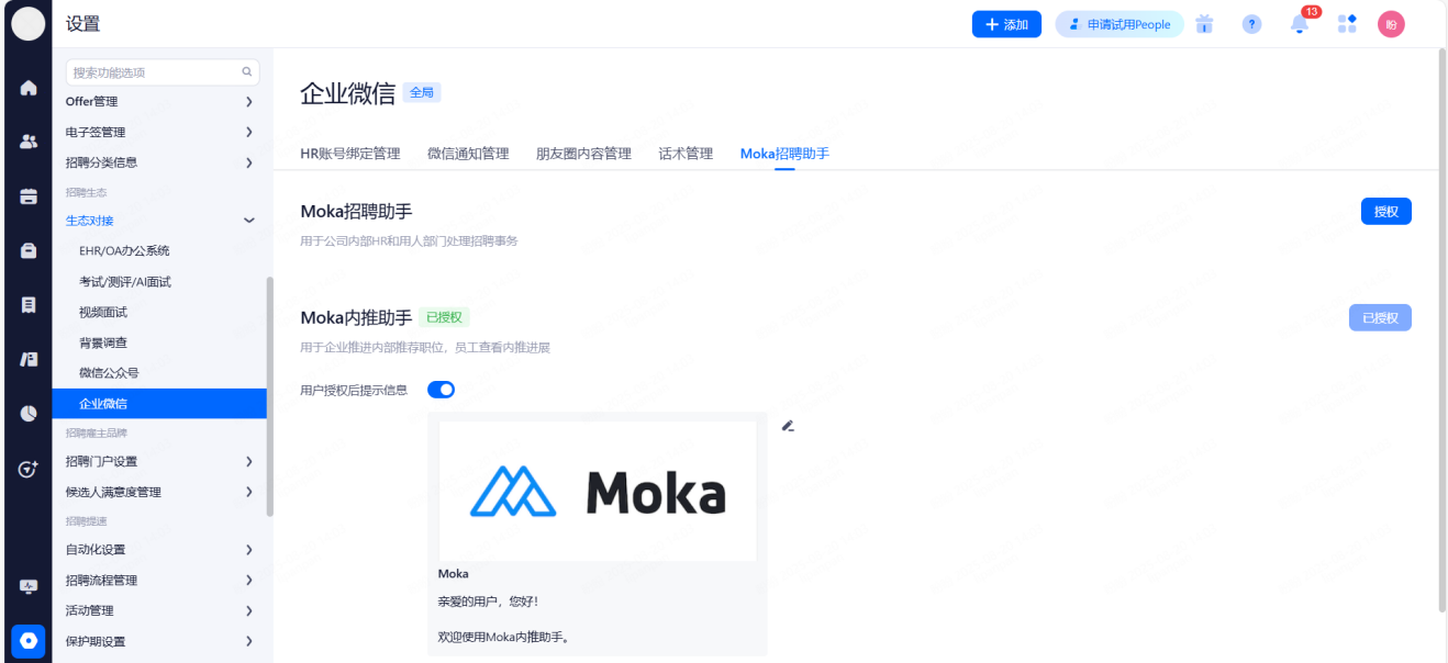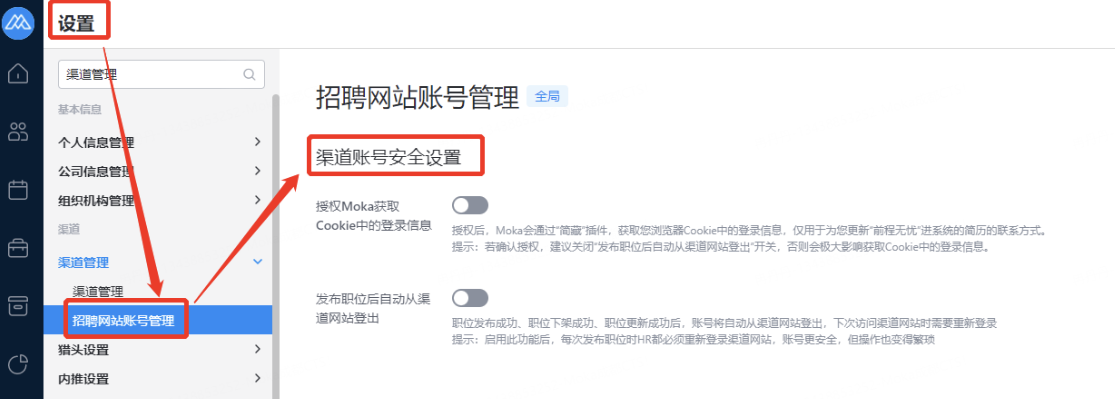 主要设置启用和关闭现有可对接渠道,同时可用来区分简历的渠道来源。