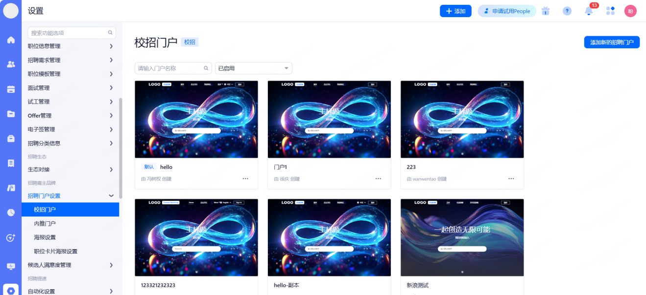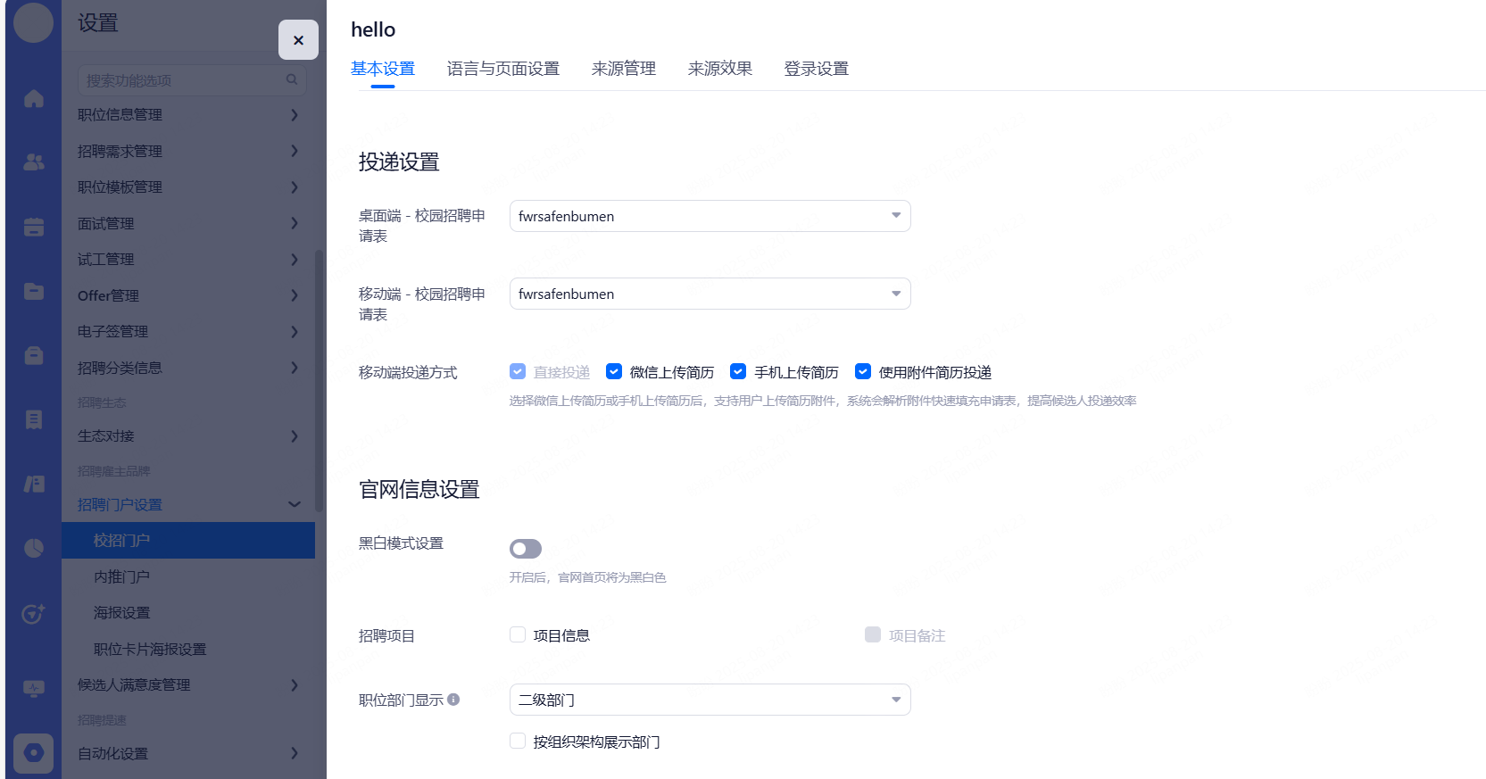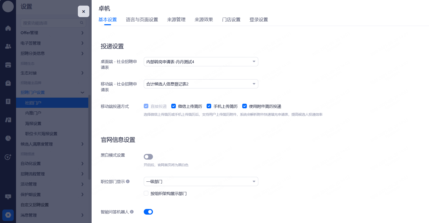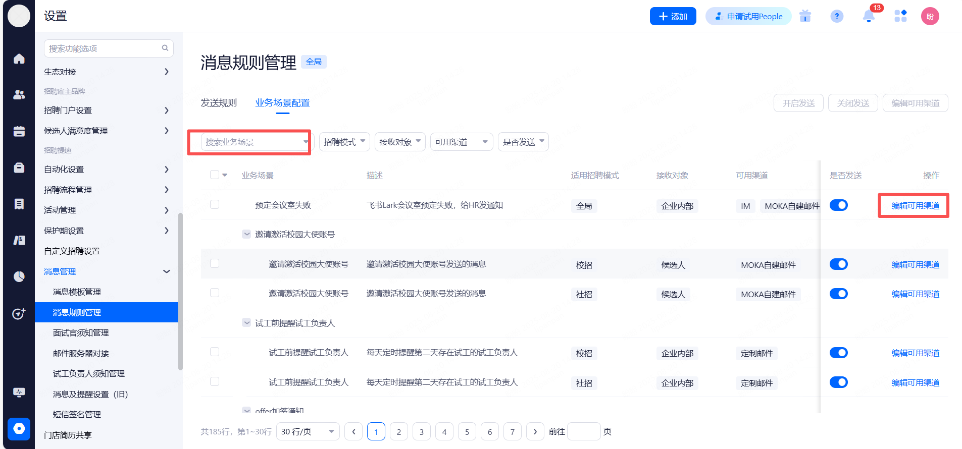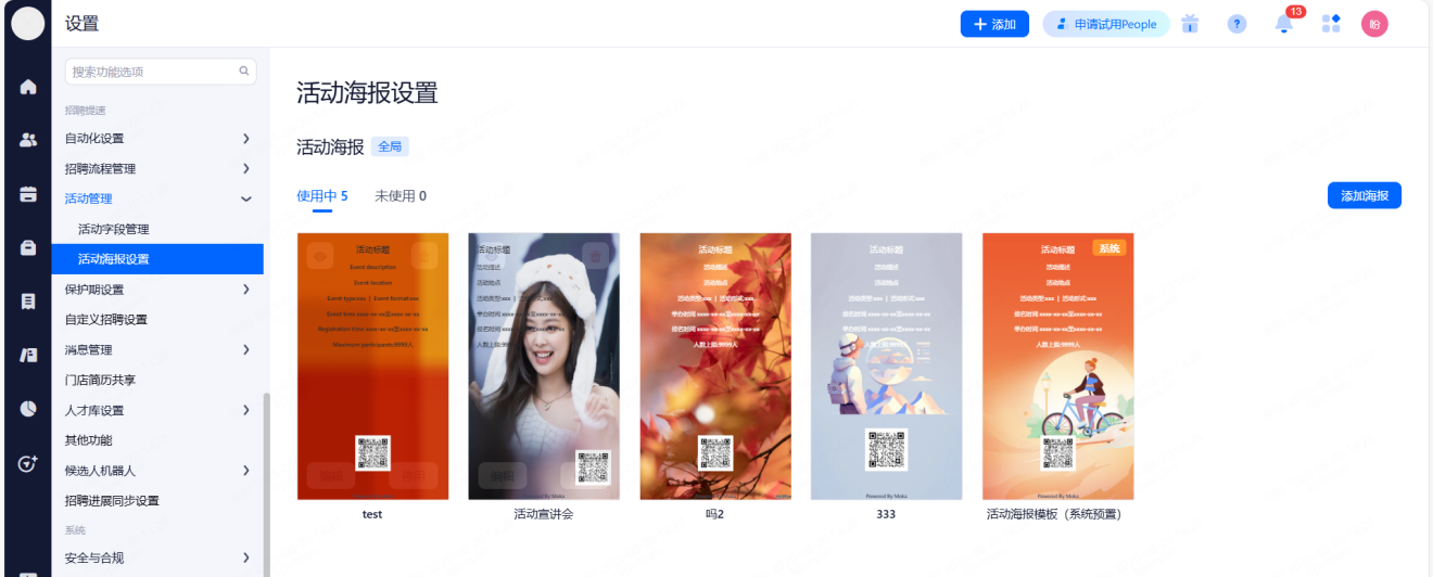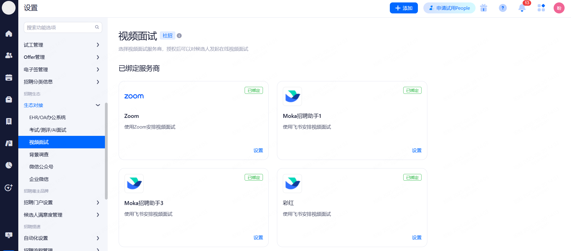 主要设置启用和关闭现有可对接渠道,同时可用来区分简历的渠道来源。