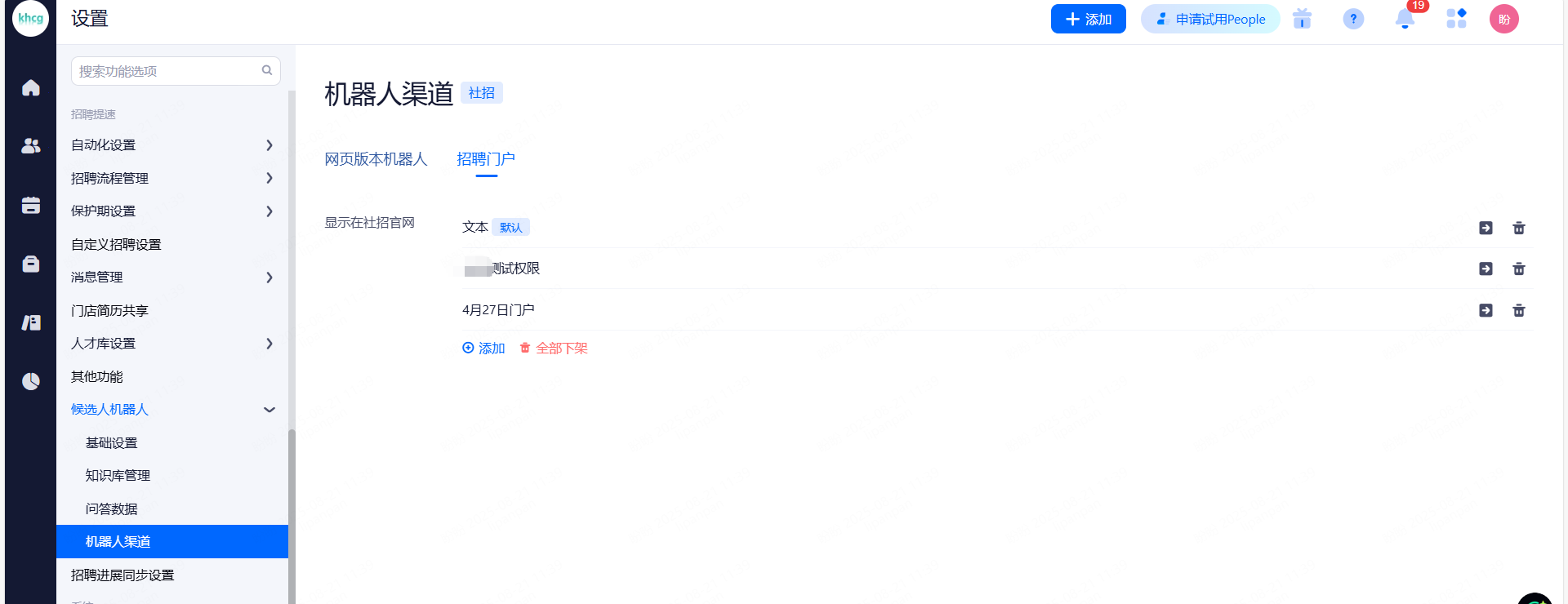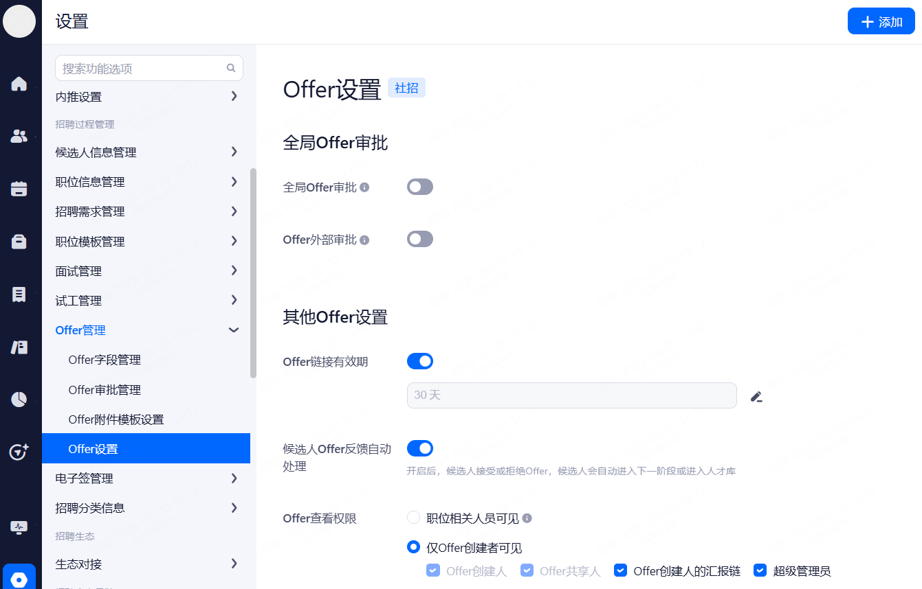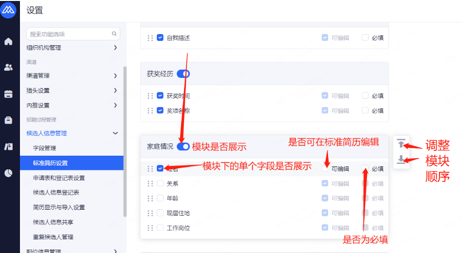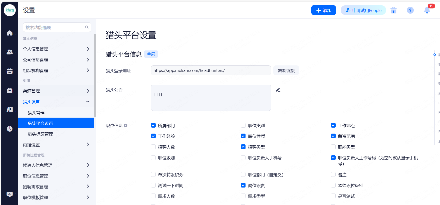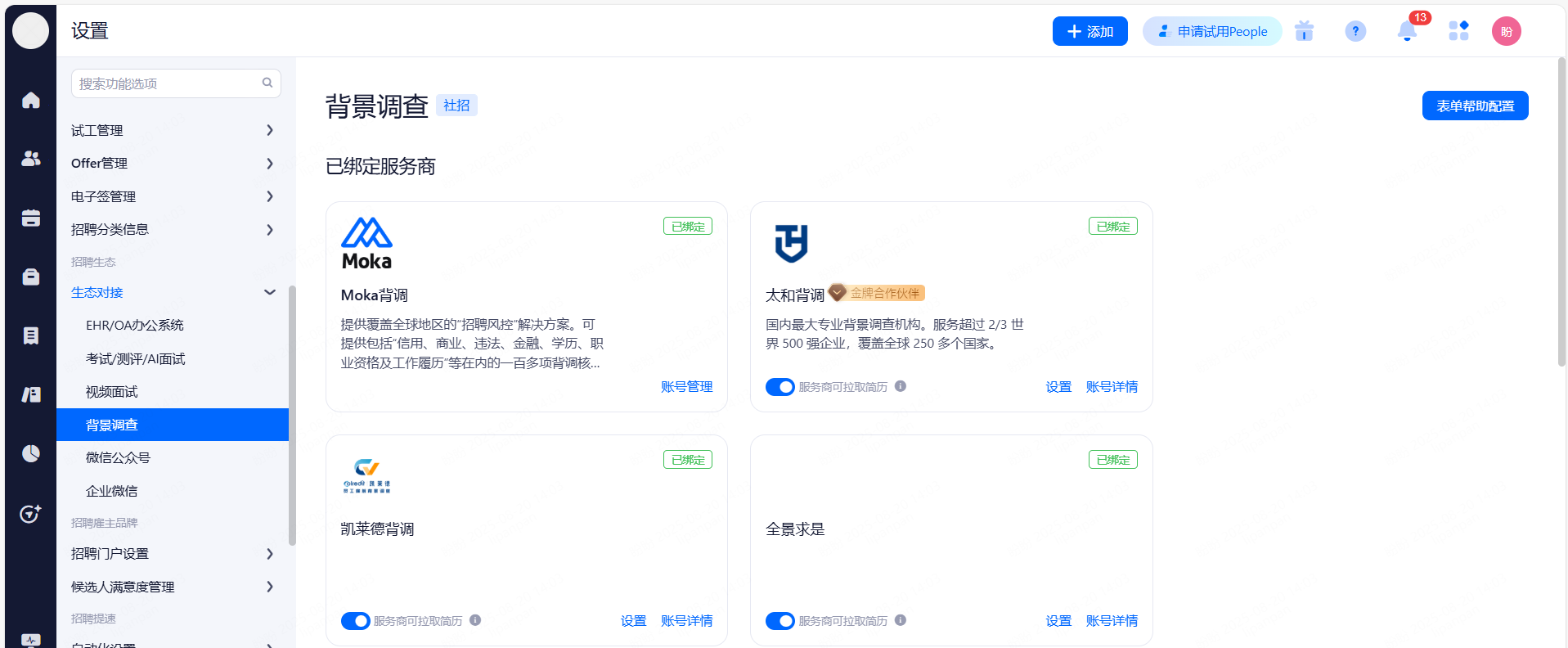 主要设置启用和关闭现有可对接渠道,同时可用来区分简历的渠道来源。