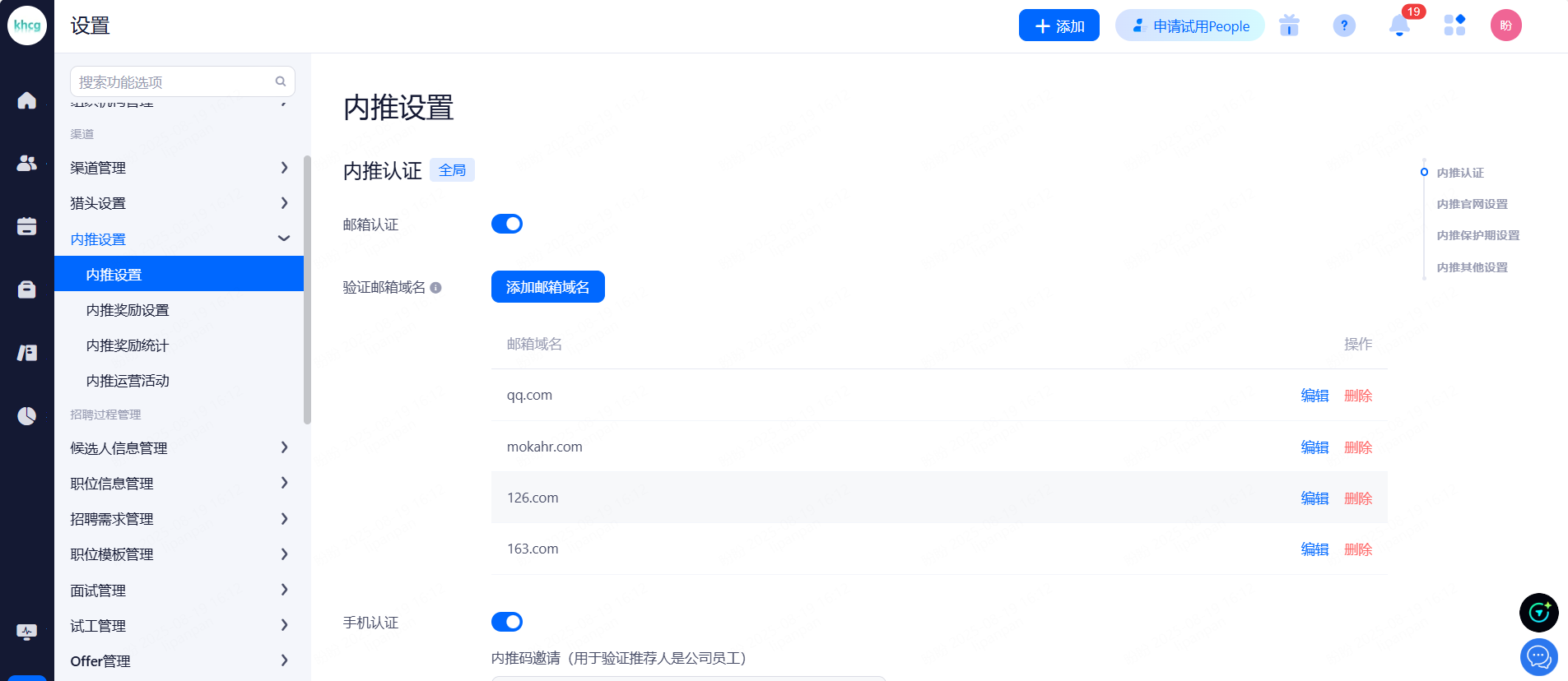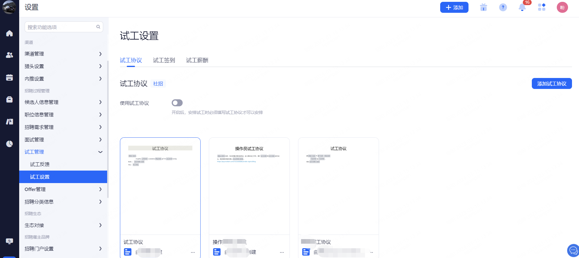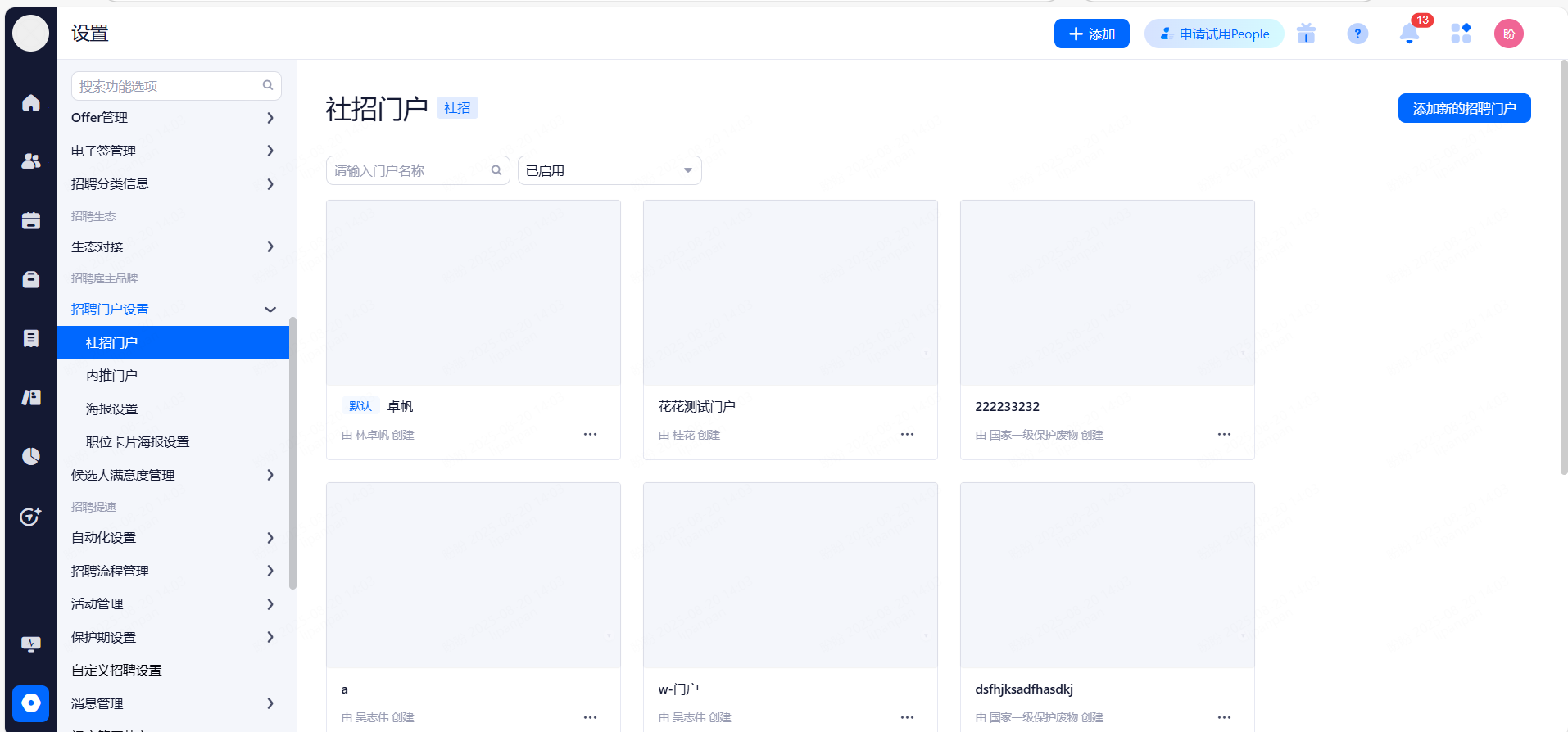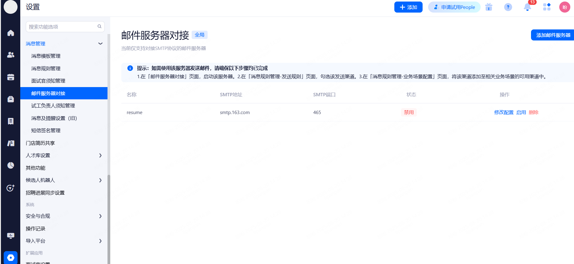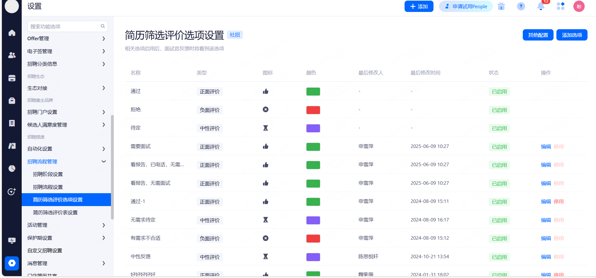 主要设置启用和关闭现有可对接渠道,同时可用来区分简历的渠道来源。