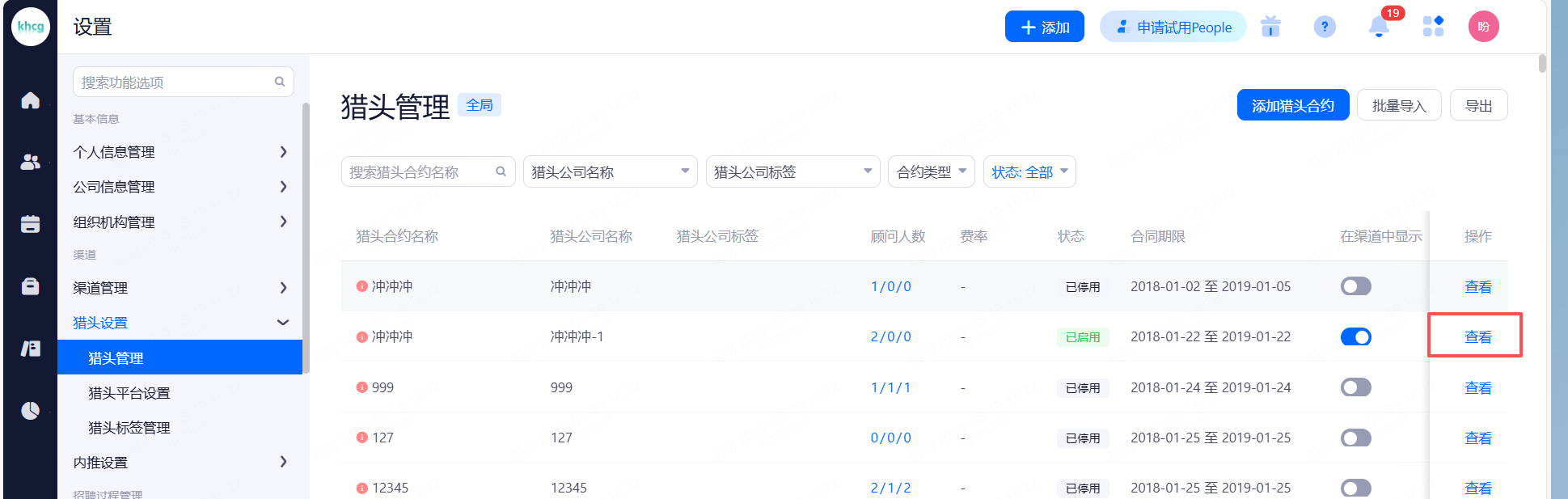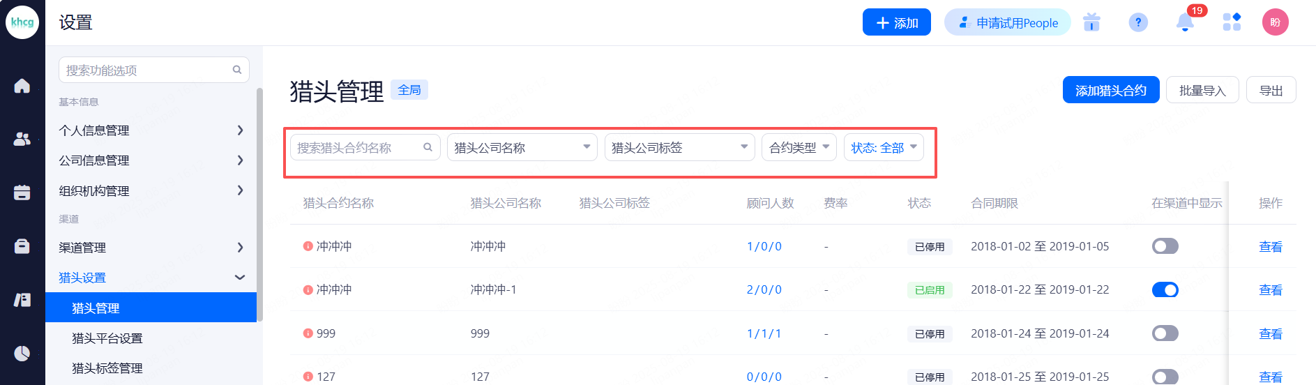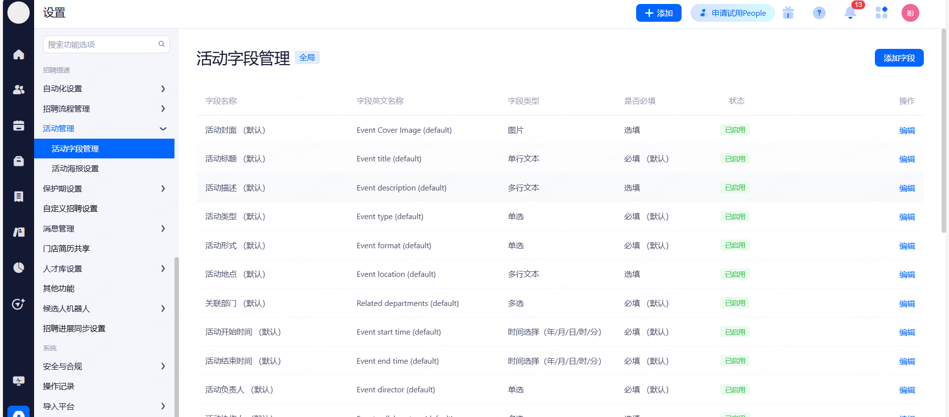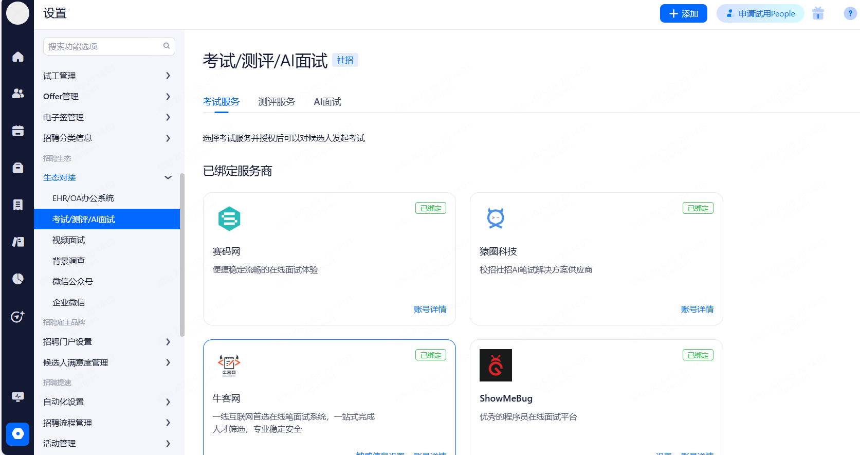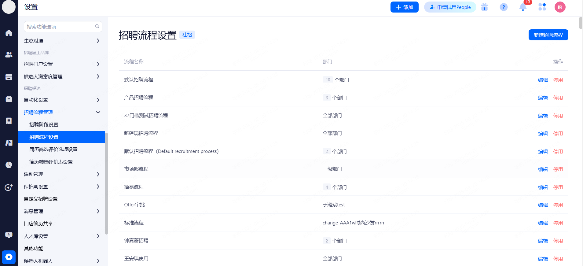 主要设置启用和关闭现有可对接渠道,同时可用来区分简历的渠道来源。