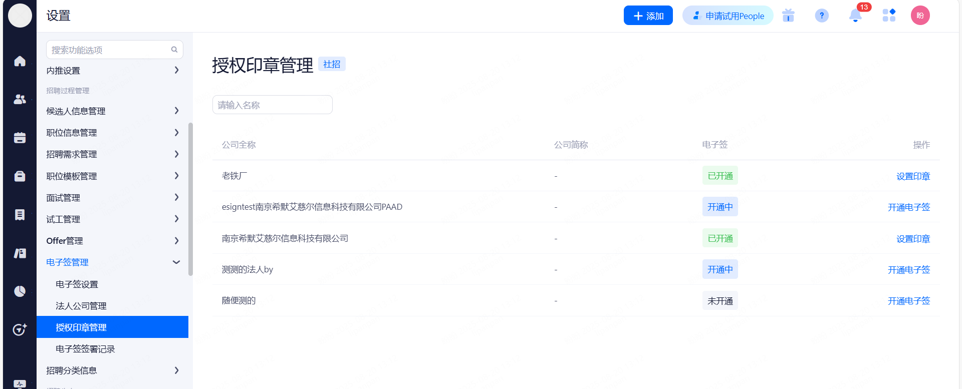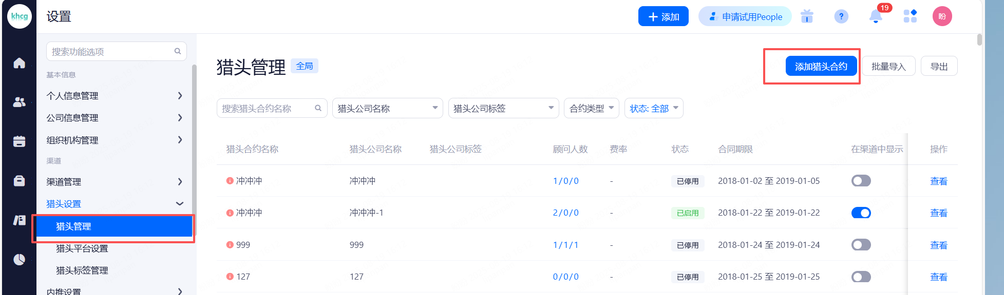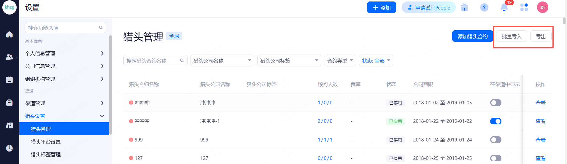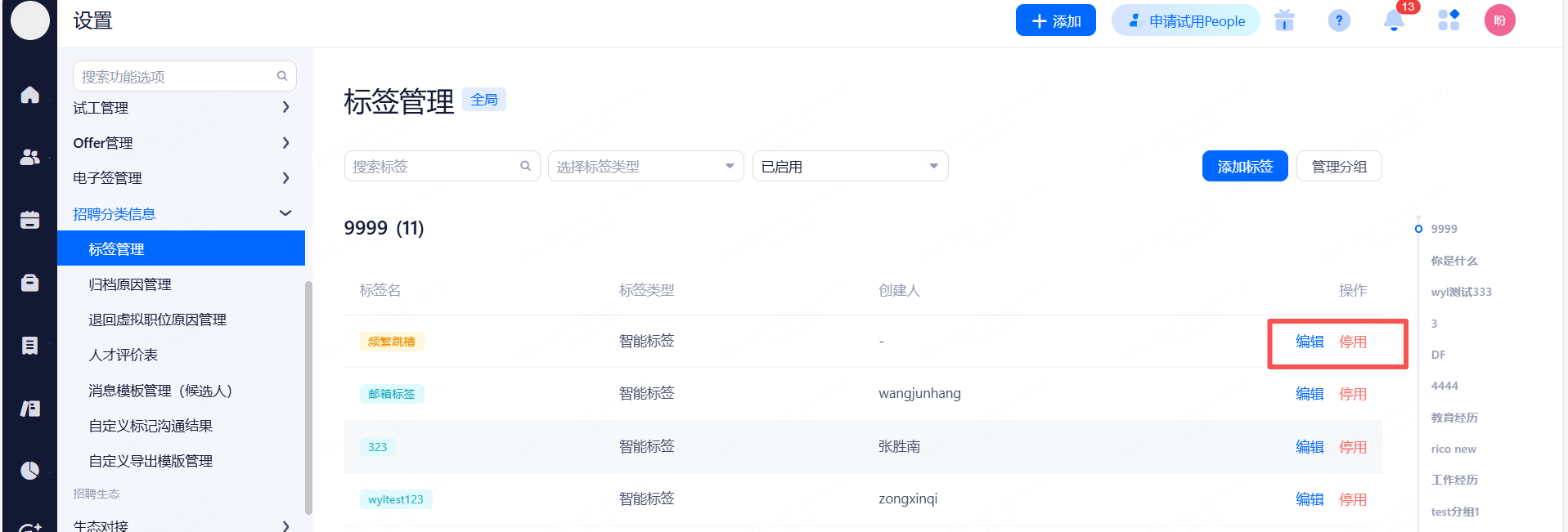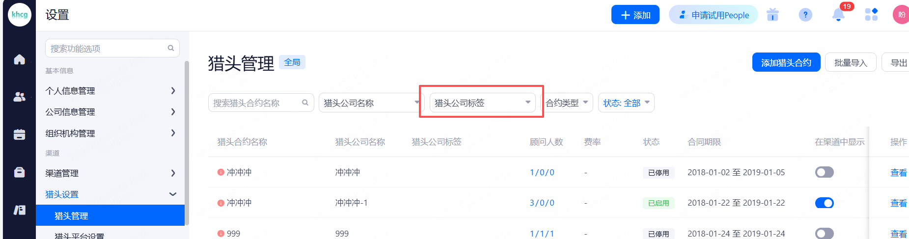 主要设置启用和关闭现有可对接渠道,同时可用来区分简历的渠道来源。