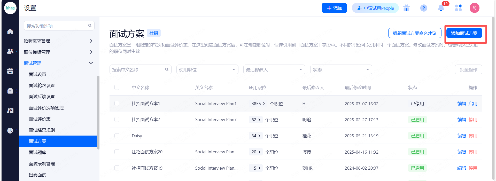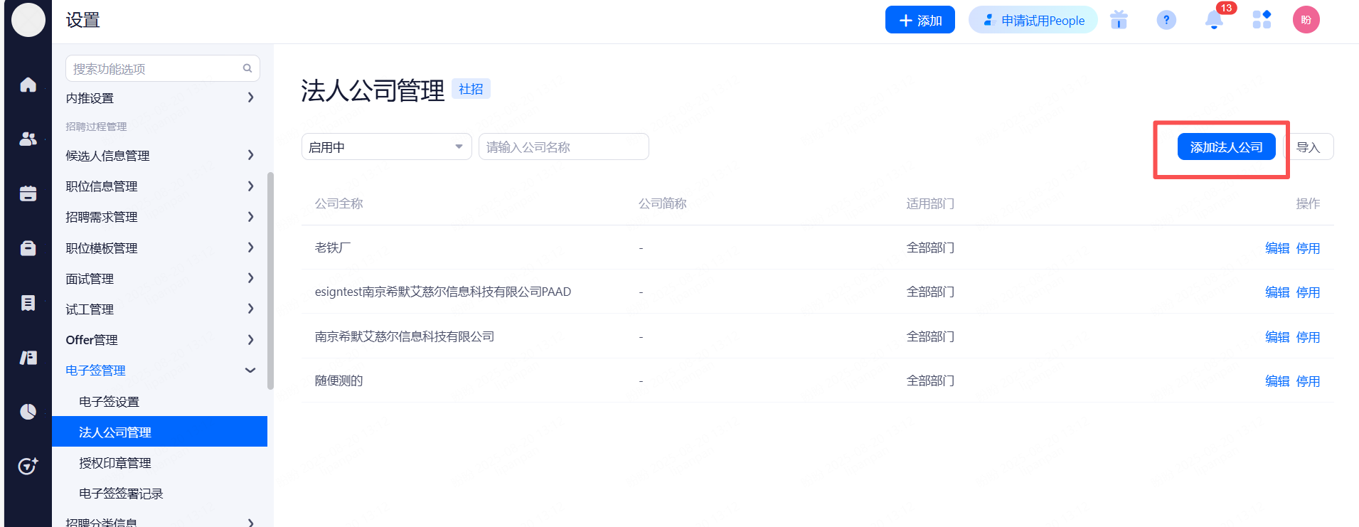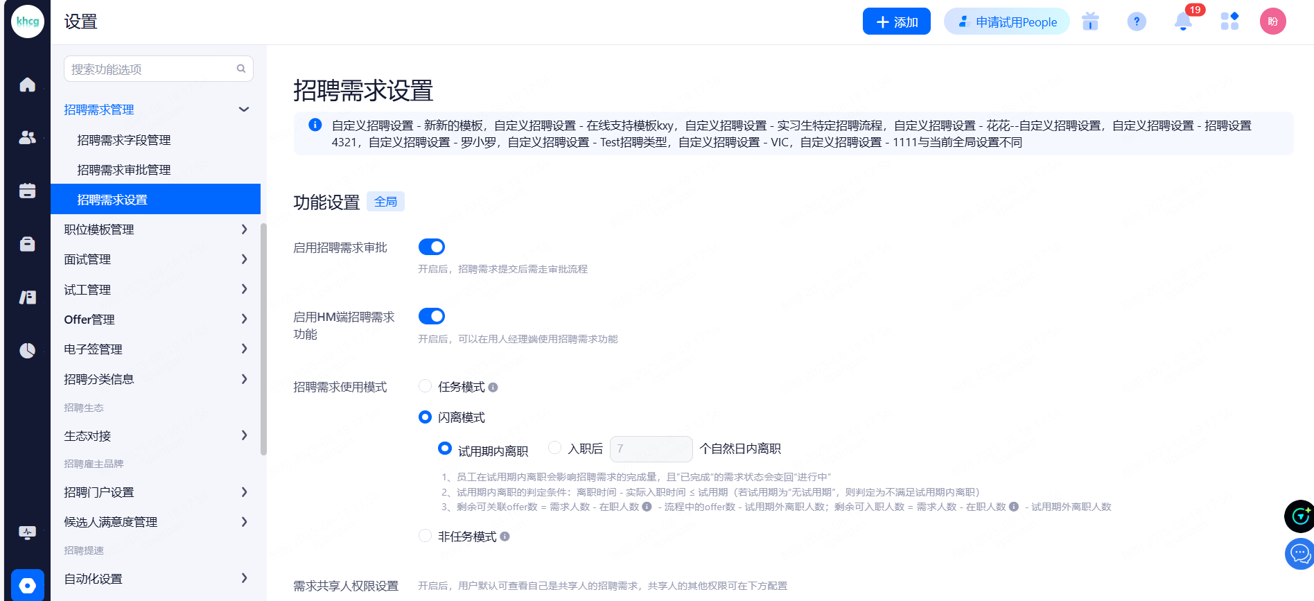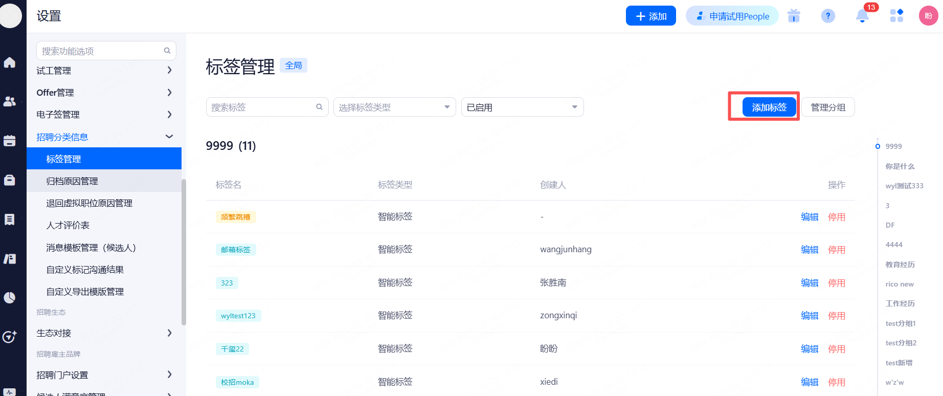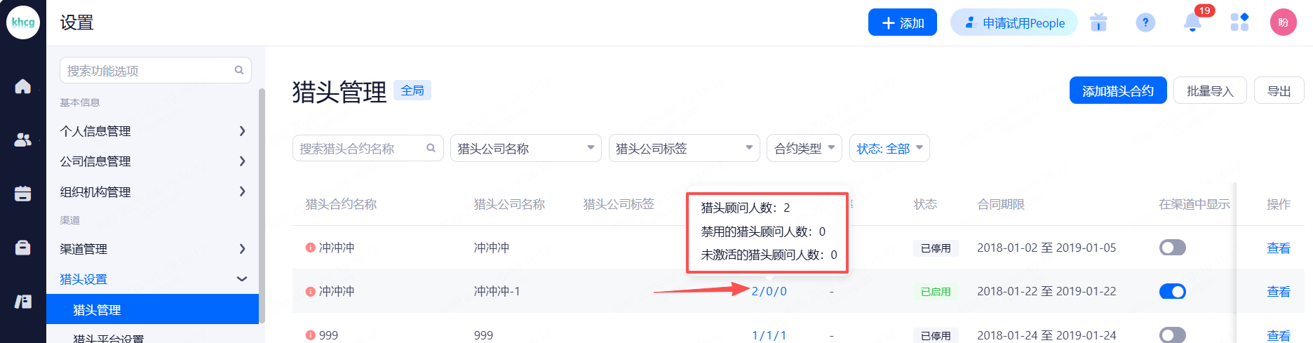 主要设置启用和关闭现有可对接渠道,同时可用来区分简历的渠道来源。