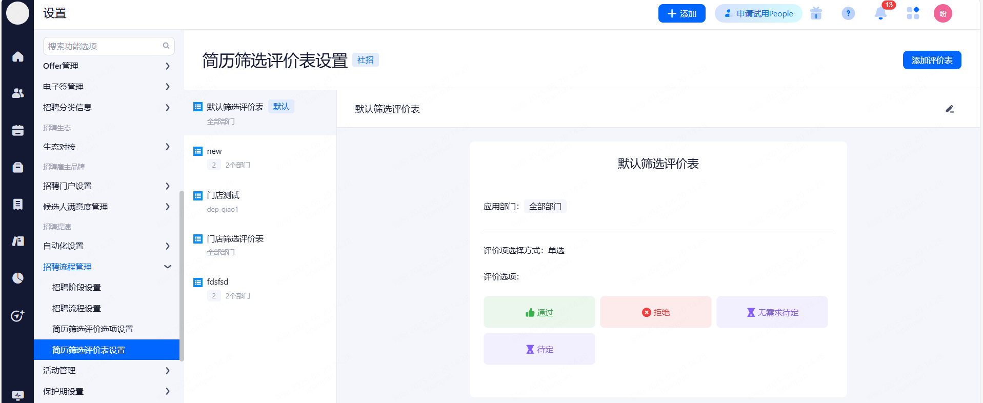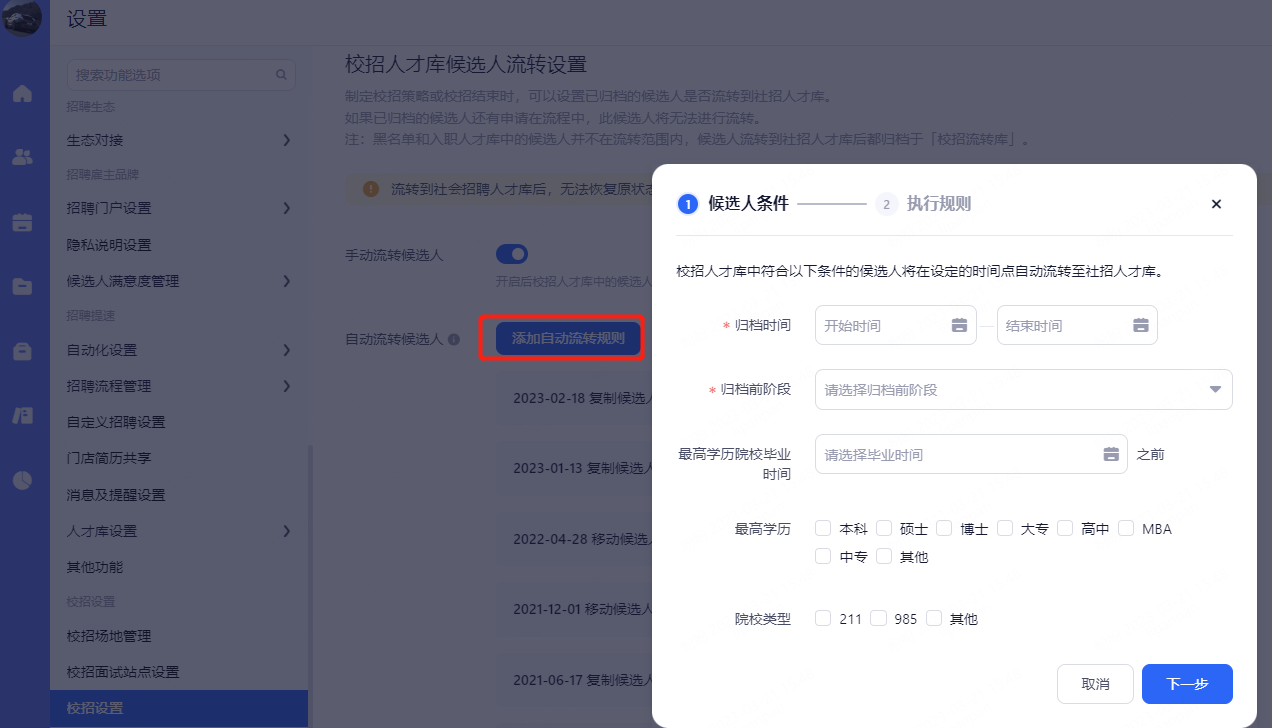 校招人才库候选人流转设置