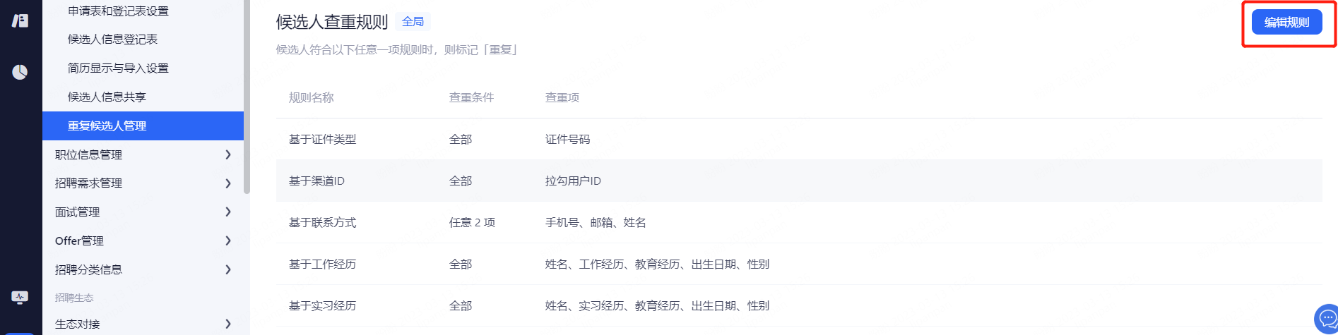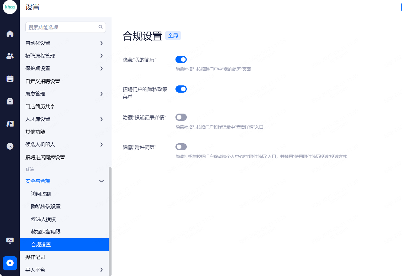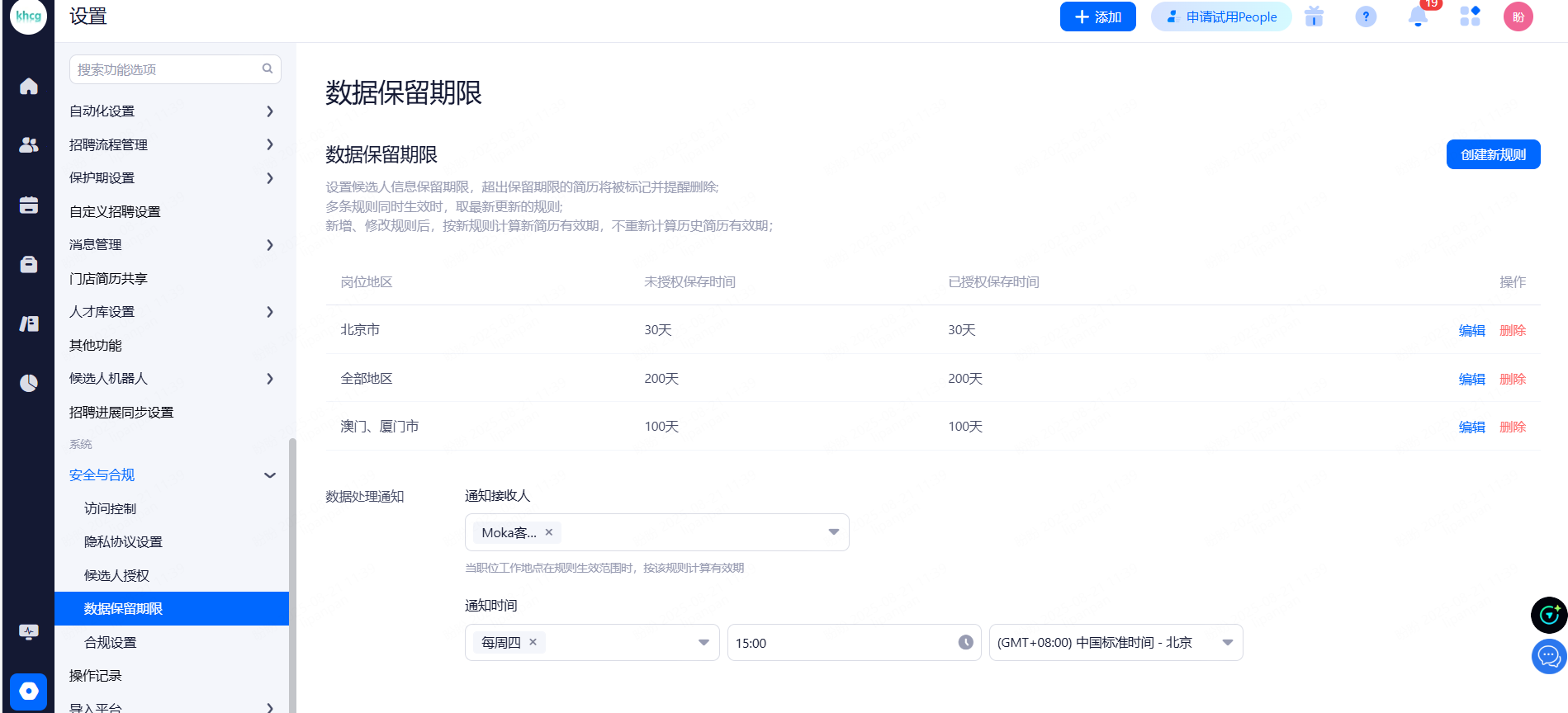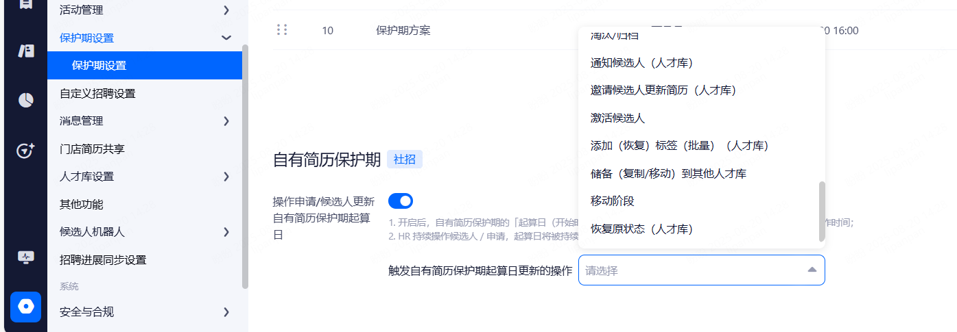 设置候选人信息保留期限,超出保留期限的简历将被标记并提醒删除