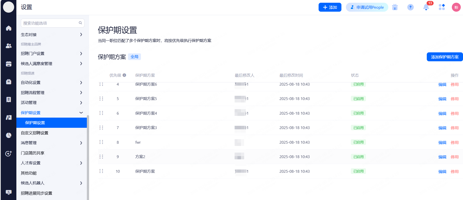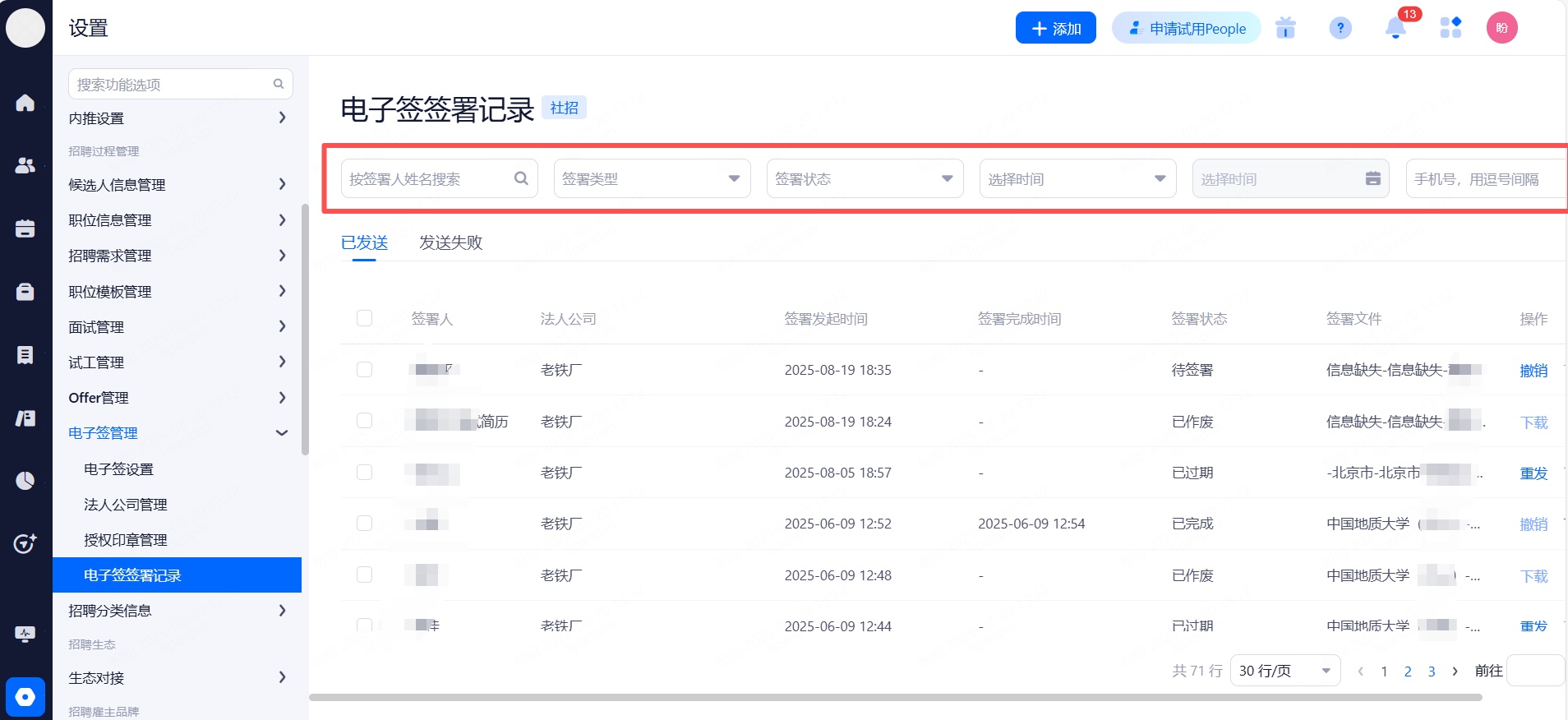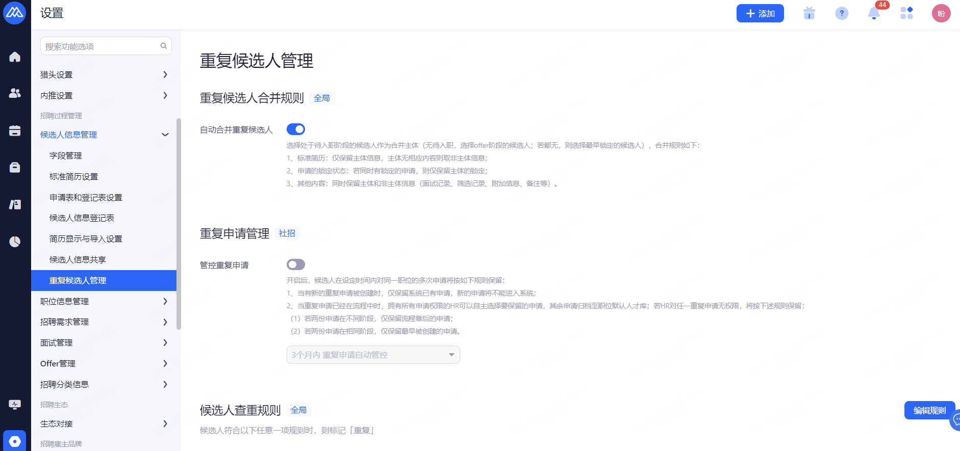 设置候选人信息保留期限,超出保留期限的简历将被标记并提醒删除