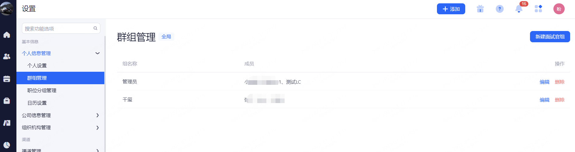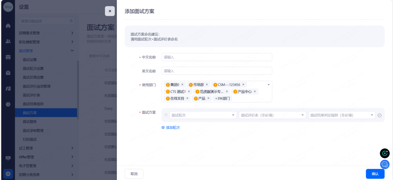 面试官组:多用于为一个候选人安排一场多轮面试,该轮面试官可可设置为一个群组,便于快捷添加该组内的所有面试官。