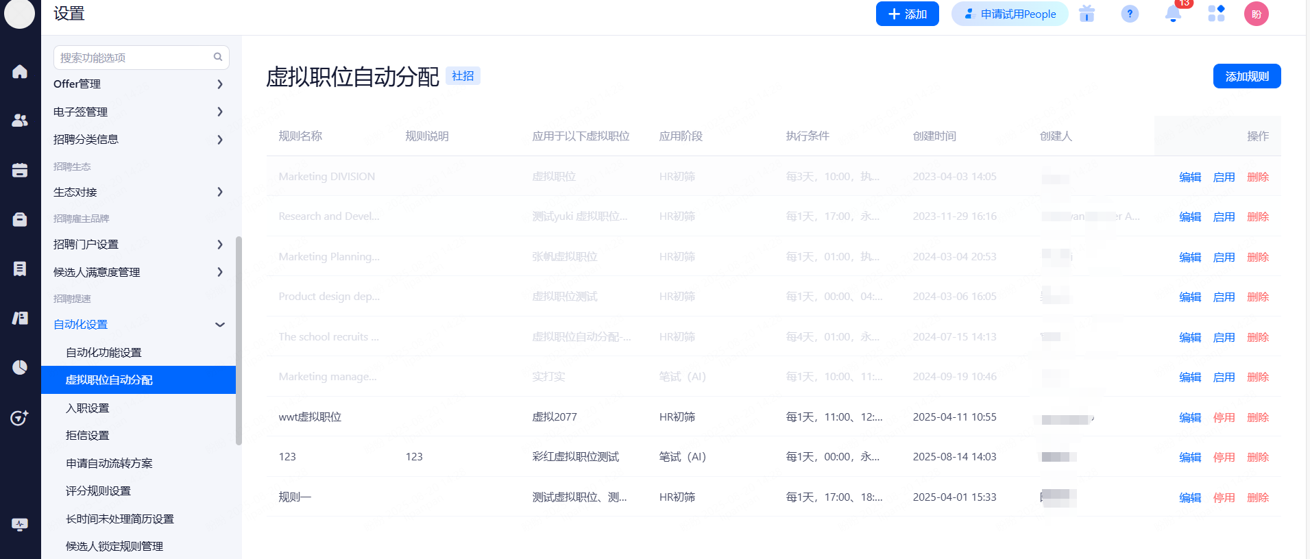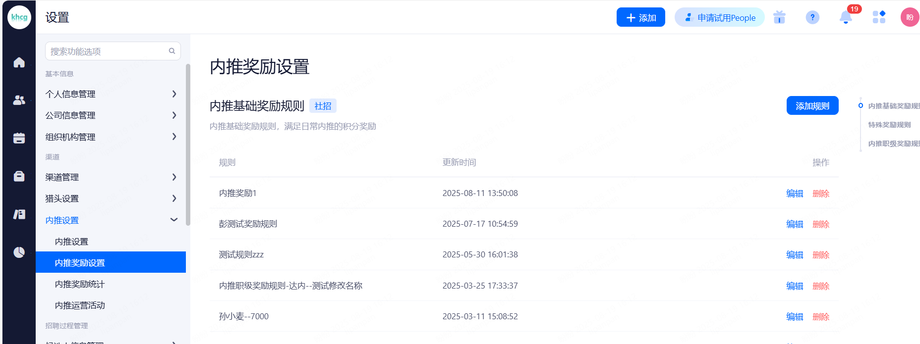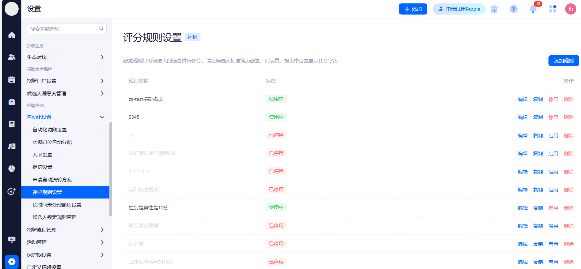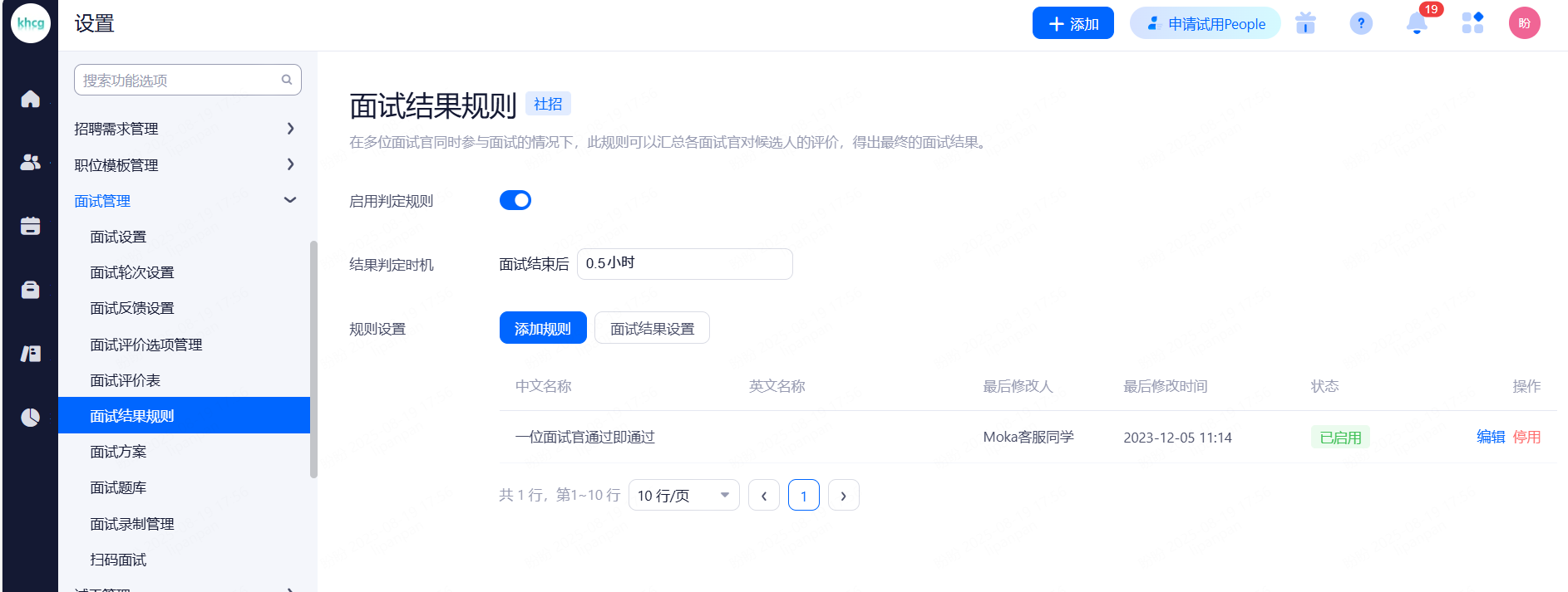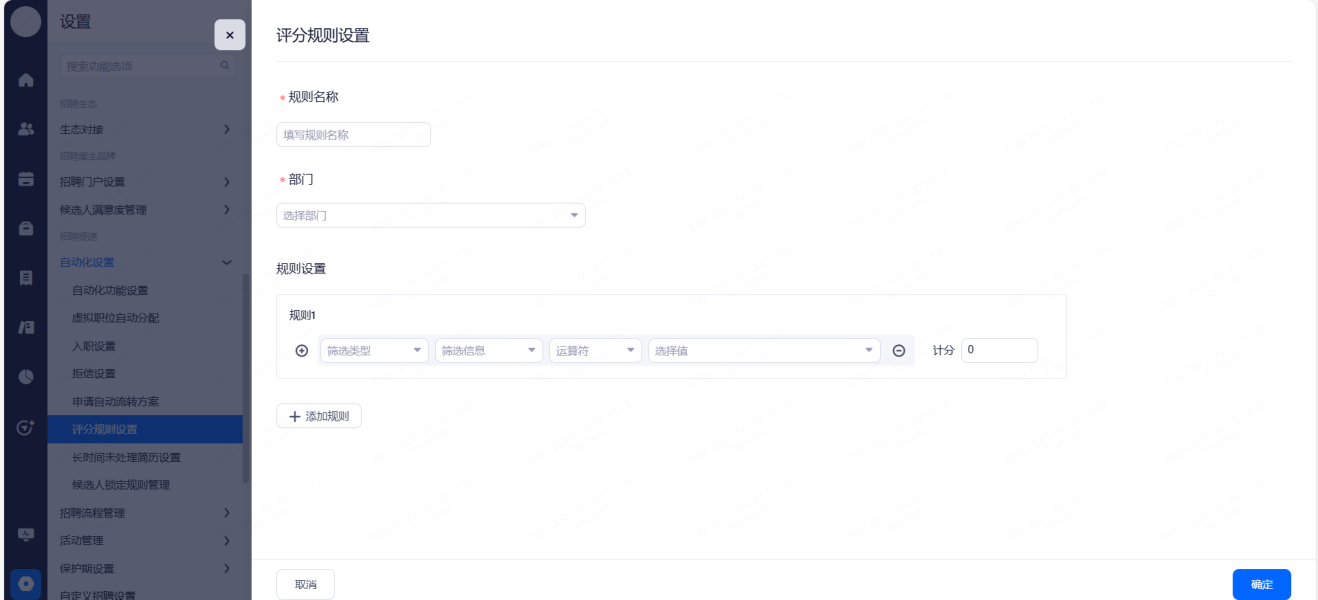 人才库规则管理:可以针对单个的人才库设置入库规则
