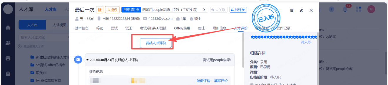 可设置仅指定的HR能编辑入职候选人的简历