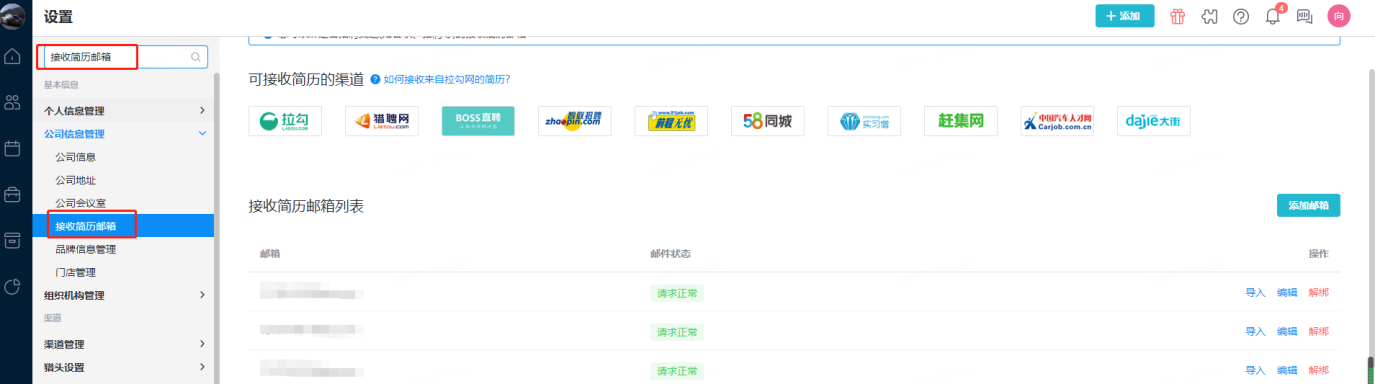 绑定接收简历邮箱