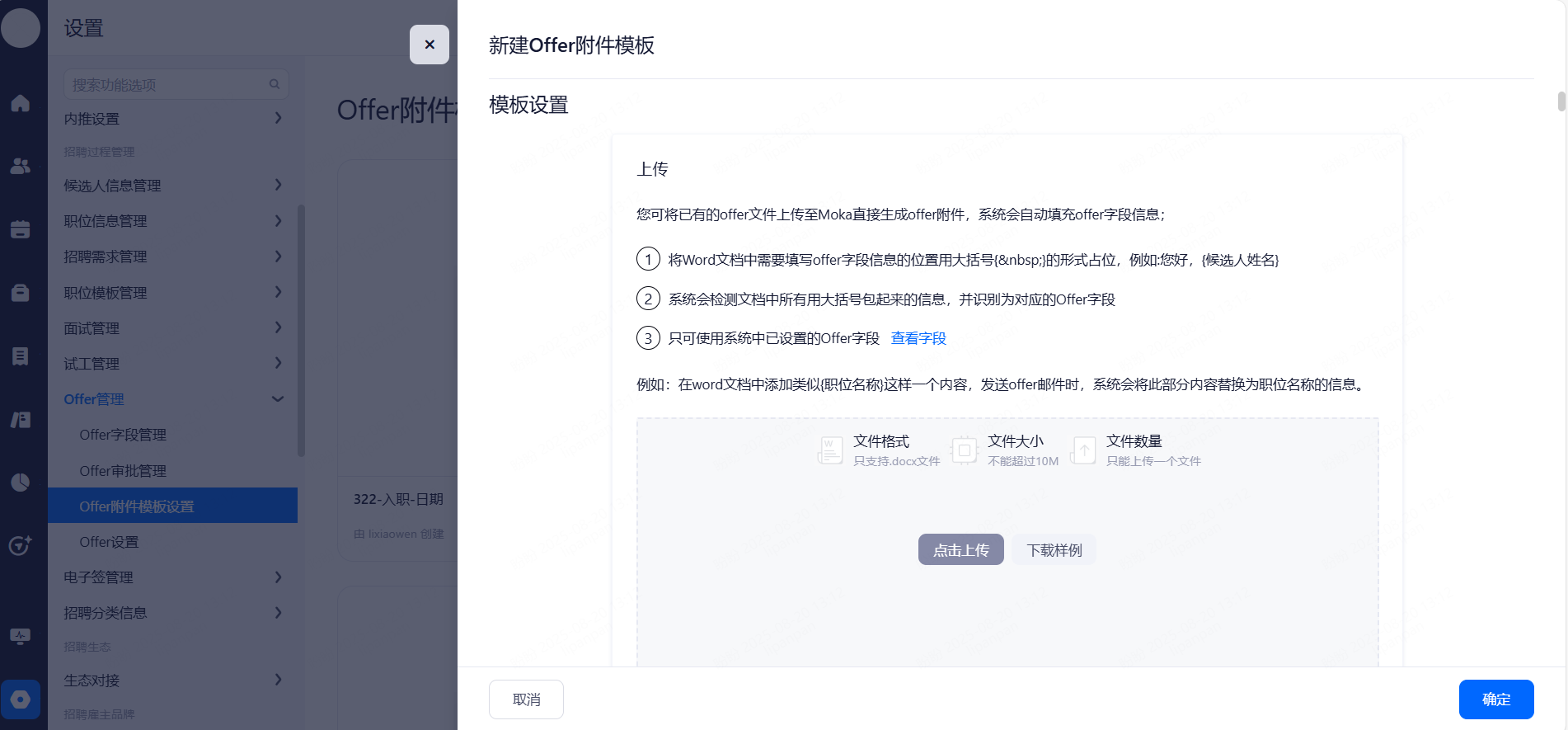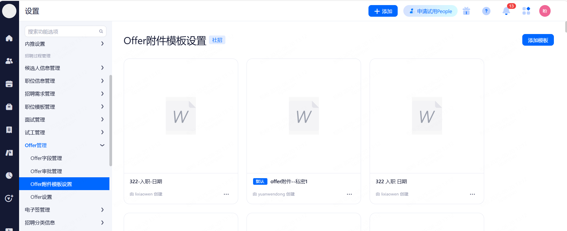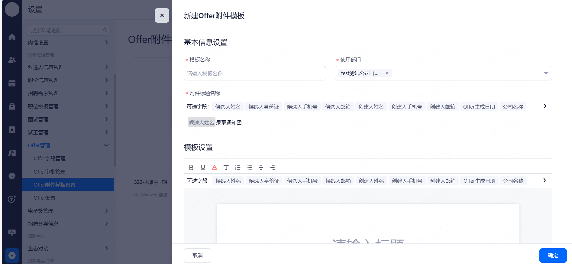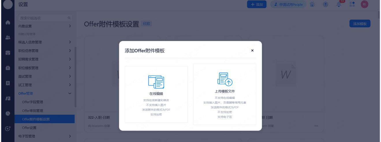 Offer模板:招聘分类信息>消息模板管理>Offer模板