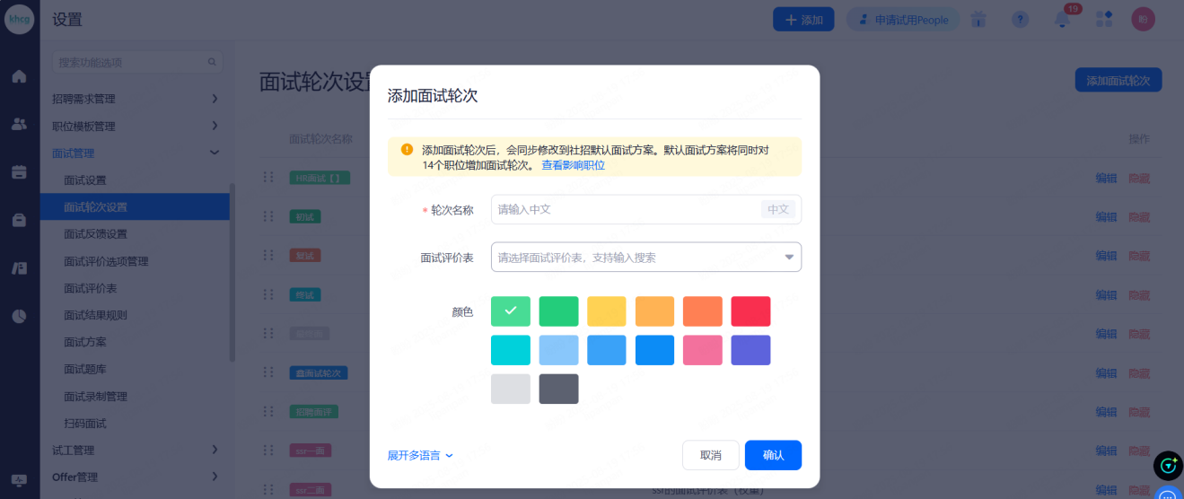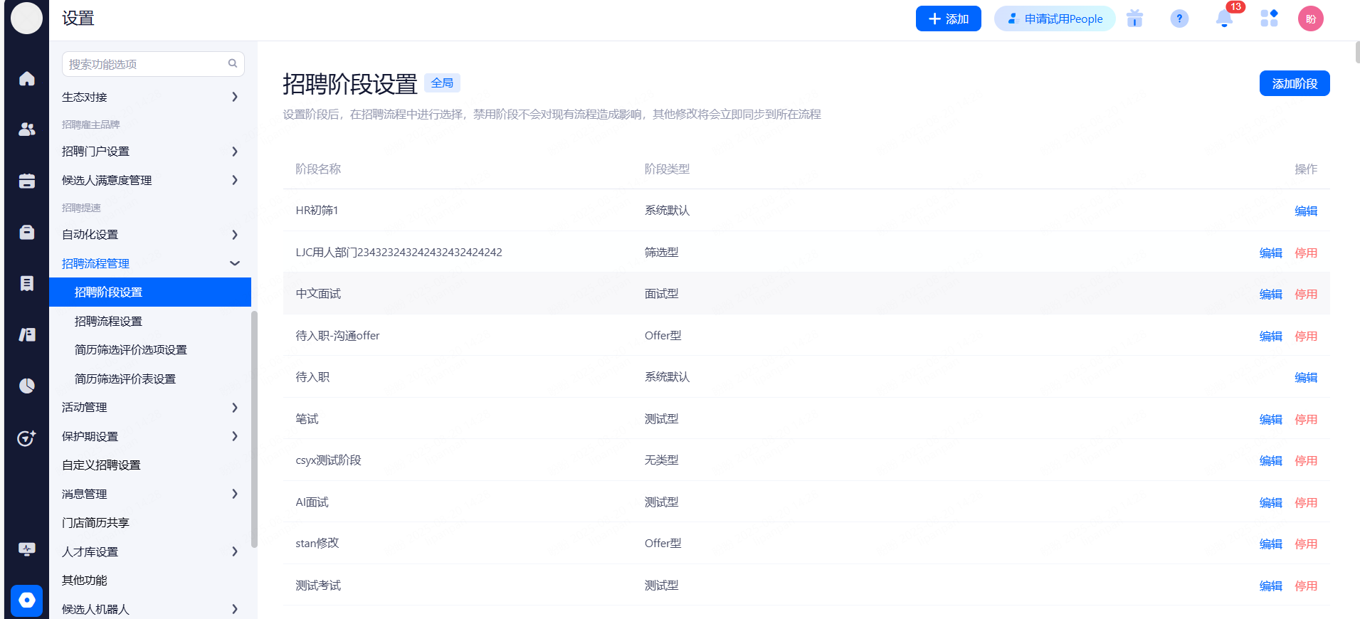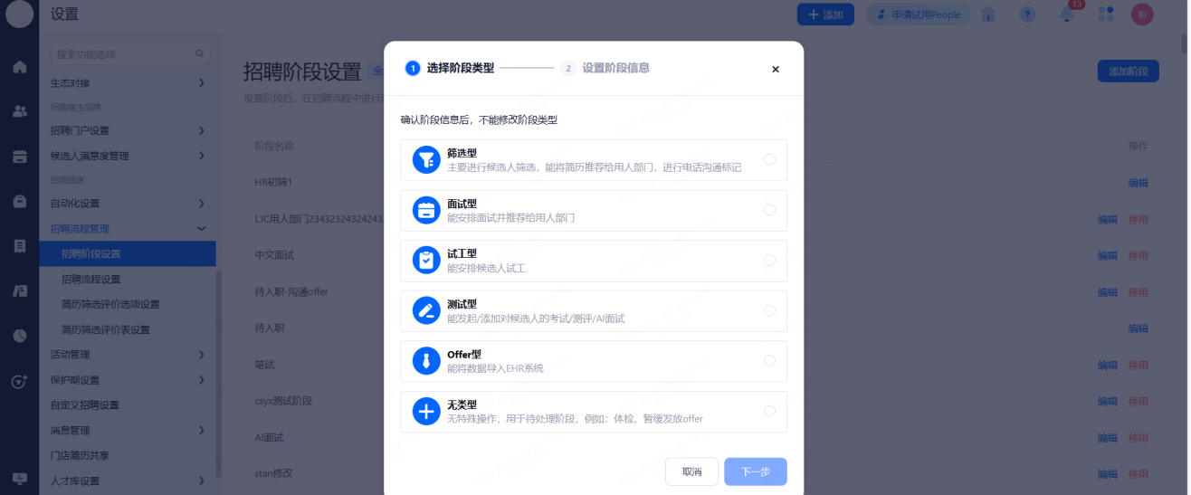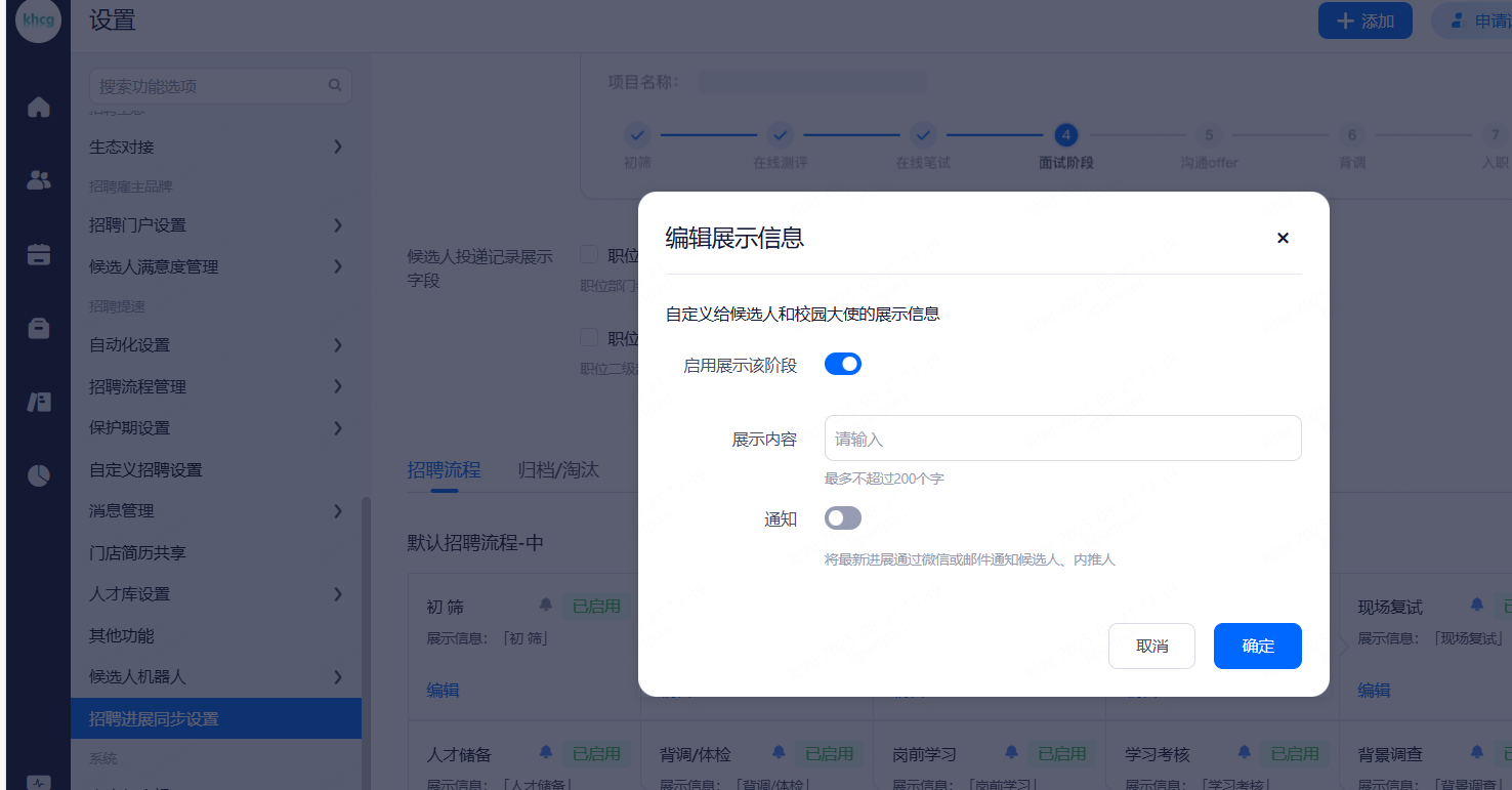 设置招聘阶段类型,给候选人,校园大使同步招聘进展。