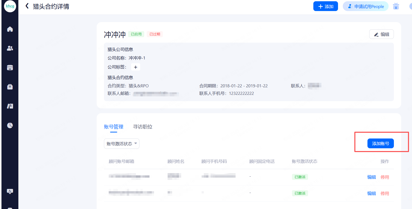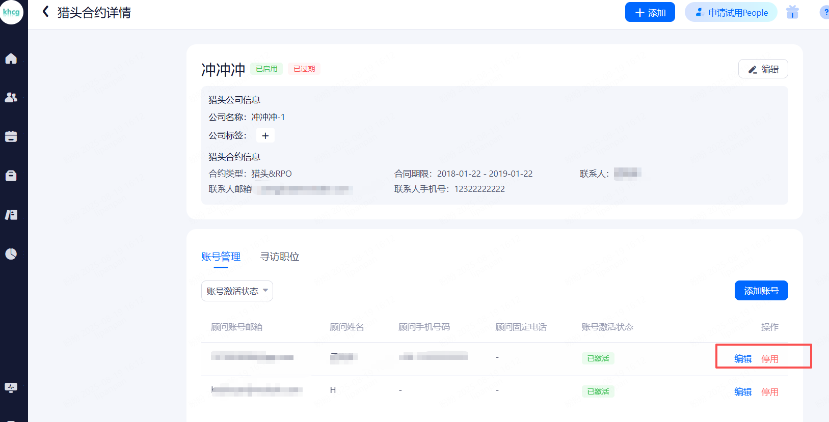 账号查看和管理。可查看公司内各种角色账号的信息并进行相关配置。
