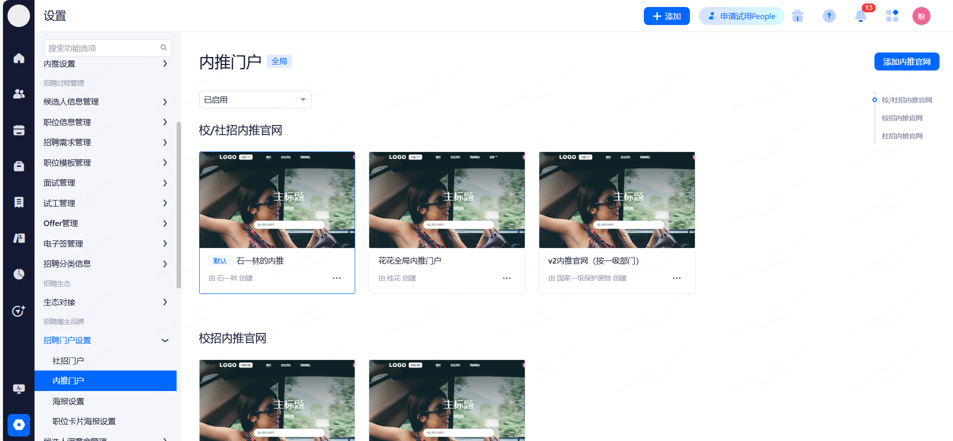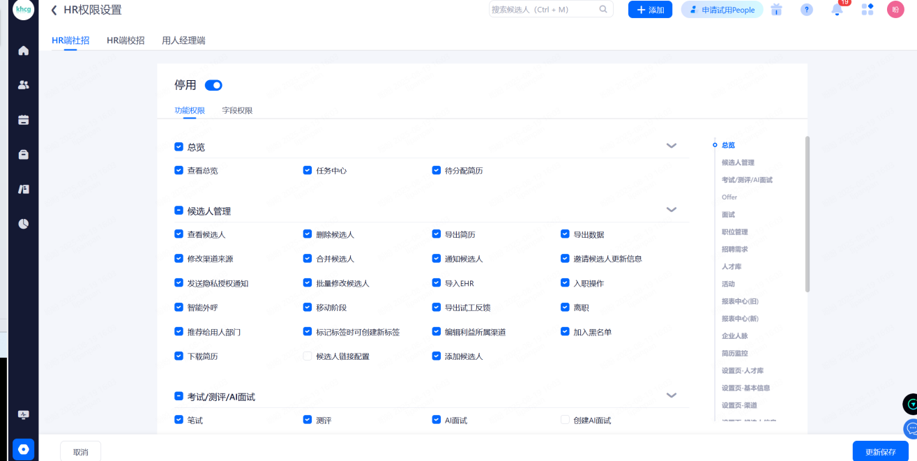 使用校招面试站点管理候选人:启用此功能后,管理员和HR账号拥有站点权限才能查看、操作投递该站点的候选人。